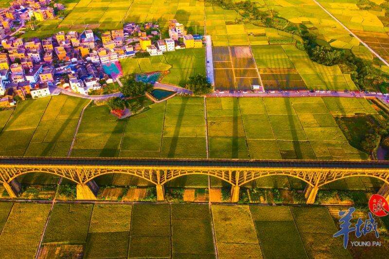 云浮罗定已有2400多年的历史,是广东首批历史文化名城,广东唯一拥有高山、丘陵、盆地和喀斯特地貌的城市,素有“文化之乡”“历史名城”等美誉。时下,位于罗定的长岗坡渡槽与金黄色稻田交相辉映,展现出迷人风光。它巨龙般的身躯,把上游的泷江河、太平河水引入金银河水库,滋润着下游农田,罗定盆地从此成为“天府之国”。老乡手里金灿灿的稻谷、放着风筝快乐奔跑的孩童……丰收的颜色、幸福的底色,在这里交汇。