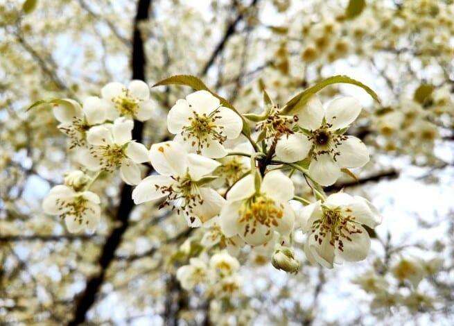 Τα λουλούδια του κράταιγου είναι πολύ ιδιαίτερα. Τα άνθη ανοίγουν προς τα κάτω και σχηματίζεται μια συστάδα από δεκάδες λουλούδια. Οι κίτρινοι στήμονες είναι διάστικτοι στη μέση, πράγμα πολύ χαριτωμένο. Κατά καιρούς, στα λουλούδια πετούν μέλισσες απασχολημένες με τη συλλογή νέκταρ. Αυτός ο κράταιγος έχει φυτευτεί εδώ και επτά χρόνια και ανθίζει στις αρχές Φεβρουαρίου κάθε χρόνο, προσελκύοντας πολλούς ανθρώπους να έρθουν για να απολαύσουν τα λουλούδια.