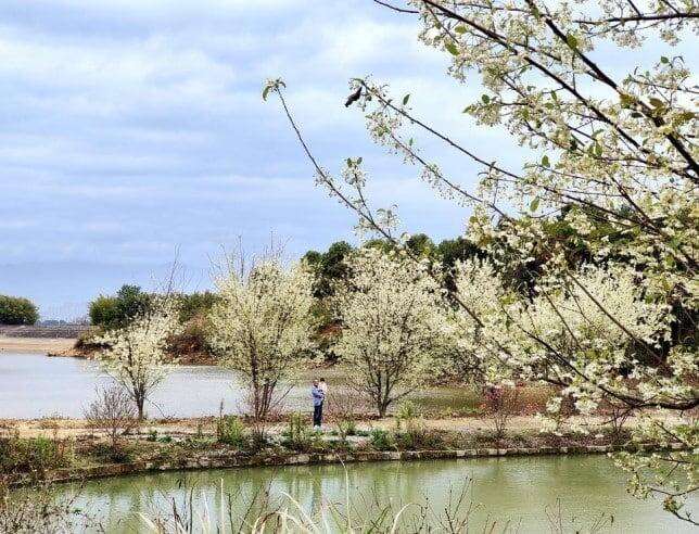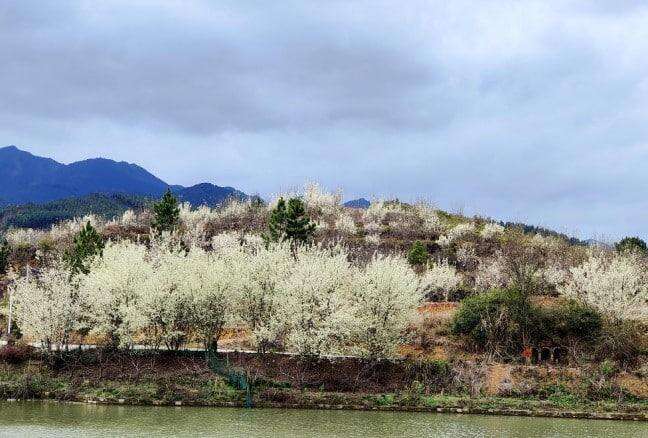 Περισσότερα από 300 στρέμματα λουλουδιών κράταιγου που φυτεύτηκαν στη φάρμα Yifu, στην πόλη Chengnan, στην κομητεία Shixing, στην πόλη Shaoguan ανταγωνίζονται για να ανθίσουν, γεμάτα αρώματα και ανοιξιάτικα τοπία. Στέκοντας στην κορυφή του βουνού και κοιτάζοντας από μακριά, τα λουλούδια του κράταιγου σε όλα τα βουνά είναι σαν νιφάδες χιονιού και λευκά σύννεφα που πλανώνται γύρω από τα βουνά. Το αναζωογονητικό άρωμα των λουλουδιών έρχεται με τις ριπές του ανέμου του βουνού.
