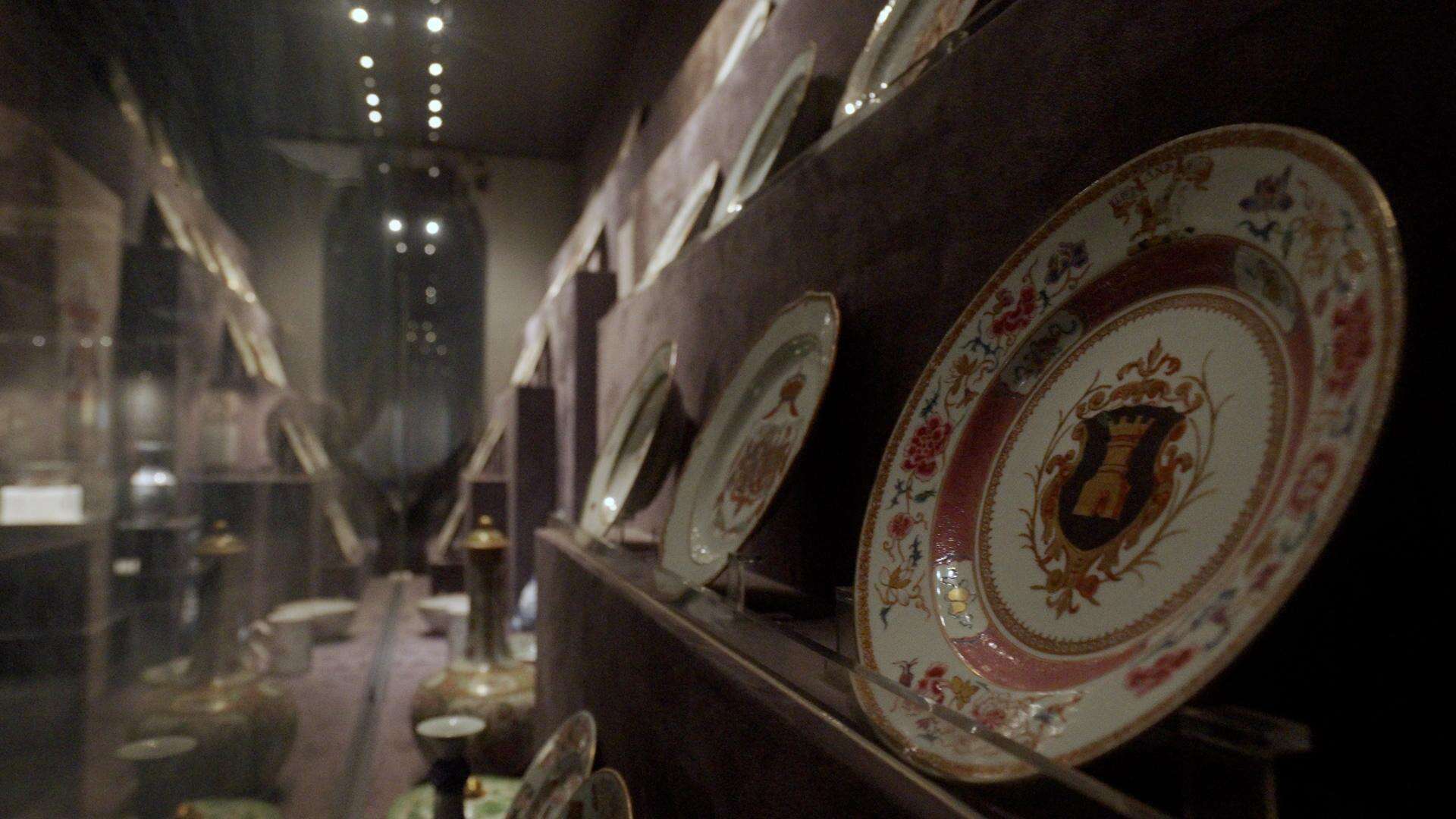 Years later, a guangcai porcelain Armorial Plate with Gold Outlining and Famille Rose Designs (shortly referred to as the "Tower Armorial Plate" made between 1723 to 1735) journeyed back from Europe to Guangzhou, where it now resides in the Zhenhai Tower of the Guangzhou Museum.