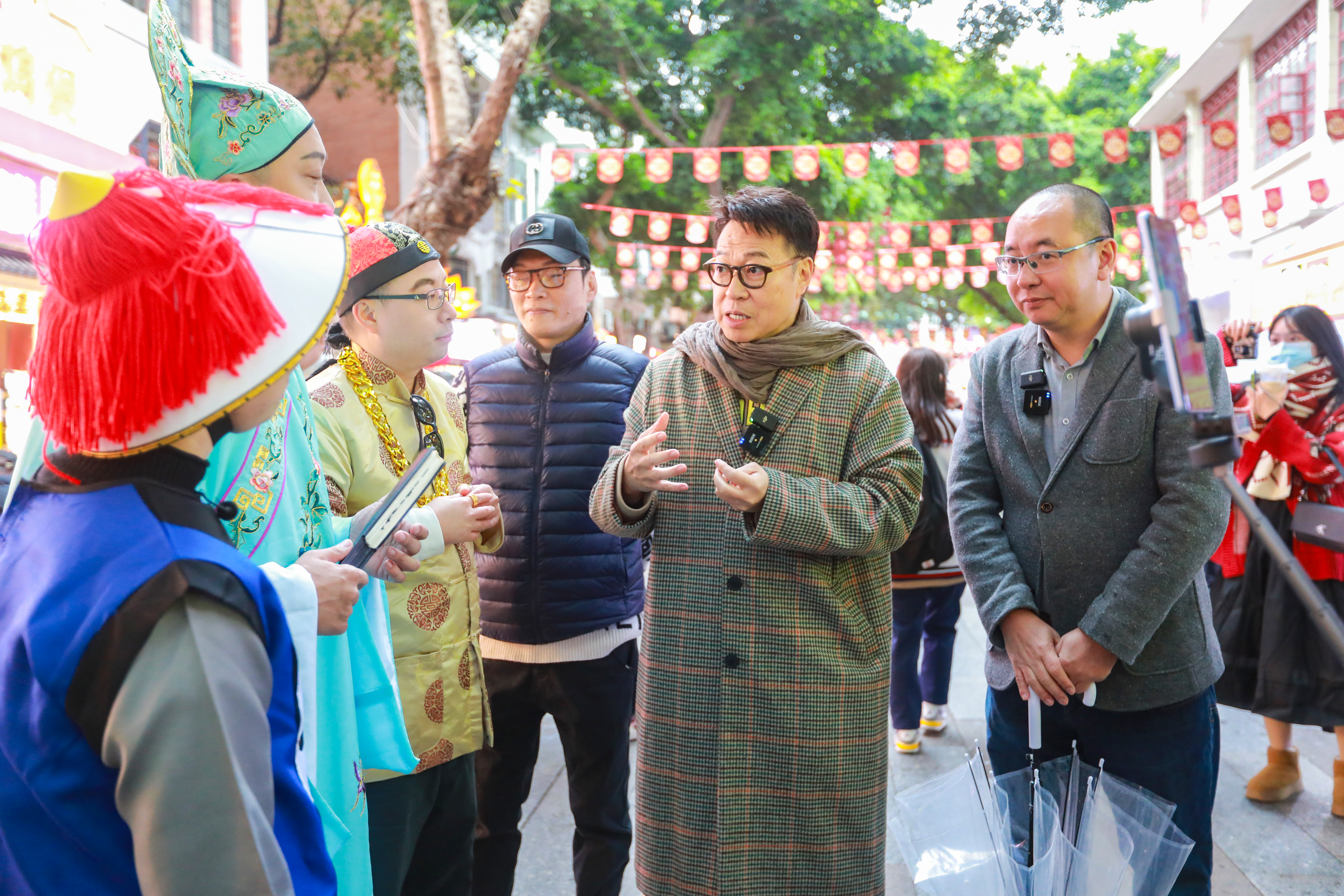 2月29日,被誉为“中国香港舞台喜剧之父”的詹昊宸(瑞文)亮相广府庙会青年喜剧节,观看喜剧演出并进行直播介绍,与青年喜剧人共同交流,陪伴市民一起看喜剧逛庙会。