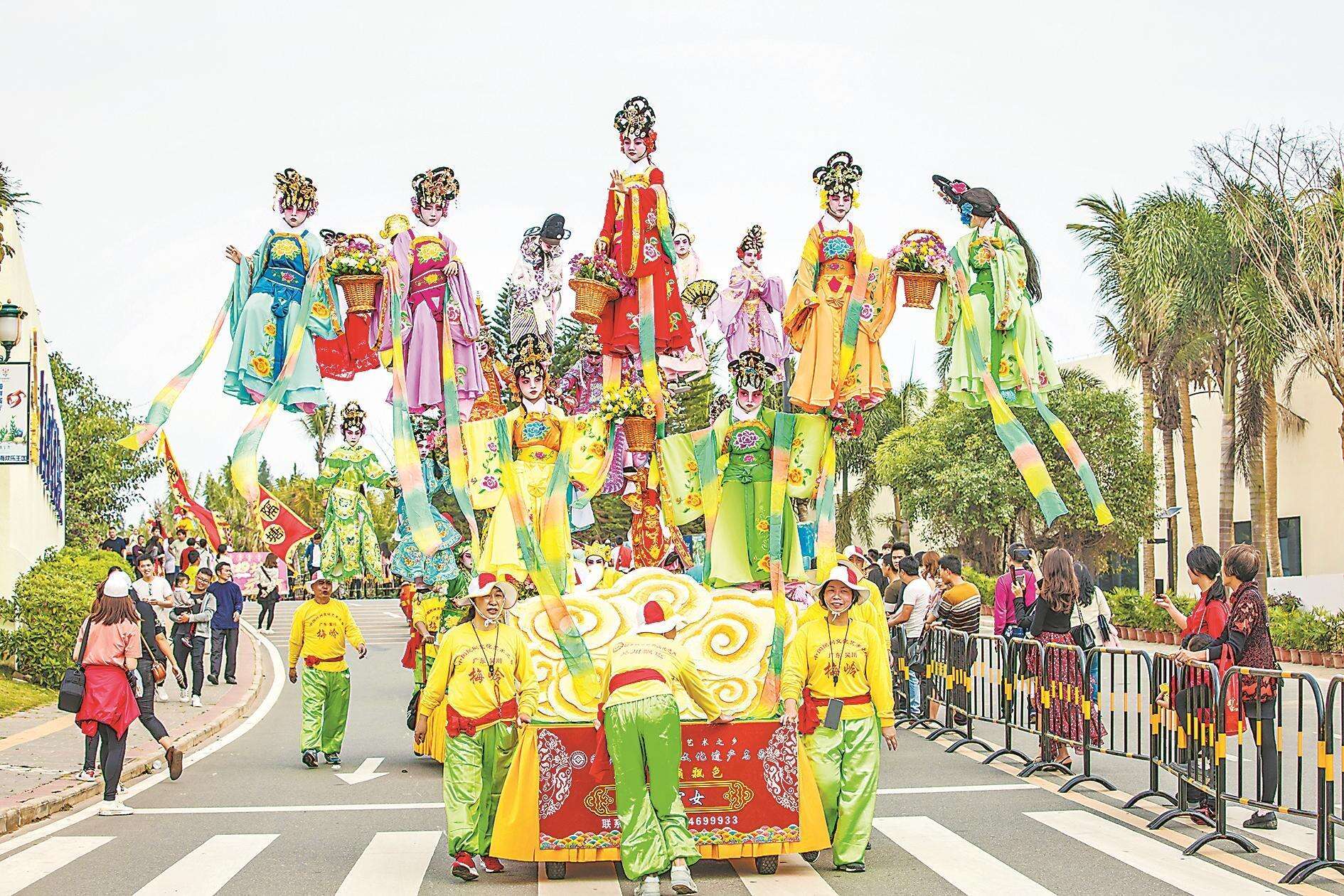 看海景、赏非遗、食年例、逛集市……首个“世界非遗版春节”来临之际,位于吴川的鼎龙湾国际海洋度假区张灯结彩、金鼓齐鸣——正月初一至元宵节,这里将举办鼎龙湾第十届粤西非遗暨年例文化节,在吴川三绝(飘色、泥塑、花桥)、英歌舞、傩舞、跳花棚、调顺网龙等数十种精彩非遗年俗活动之外,游客还将体验到非遗火壶、打铁花、火飞刀、喷火等非遗绝技,欣赏海岸非遗国风电音节。
