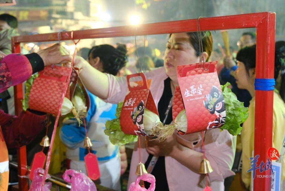 Lettuce is one of the main symbols of the Kengkou Lettuce Market. Lettuce is called Shengcai in Cantonese, meaning bringing wealth. It is believed that passing through the Lettuce Market will naturally lead to prosperity. This year, around 6,000 kilograms of lettuce will be prepared, and visitors to the Guanyin Temple can take home lettuce dumplings. The lettuce dumplings are packaged in a red plastic bag and contain two lettuce and two arrowheads. The lettuce must have both a top and a bottom, symbolizing completeness in life and work, while the arrowheads are thought to bring good fortune to those hoping for children.