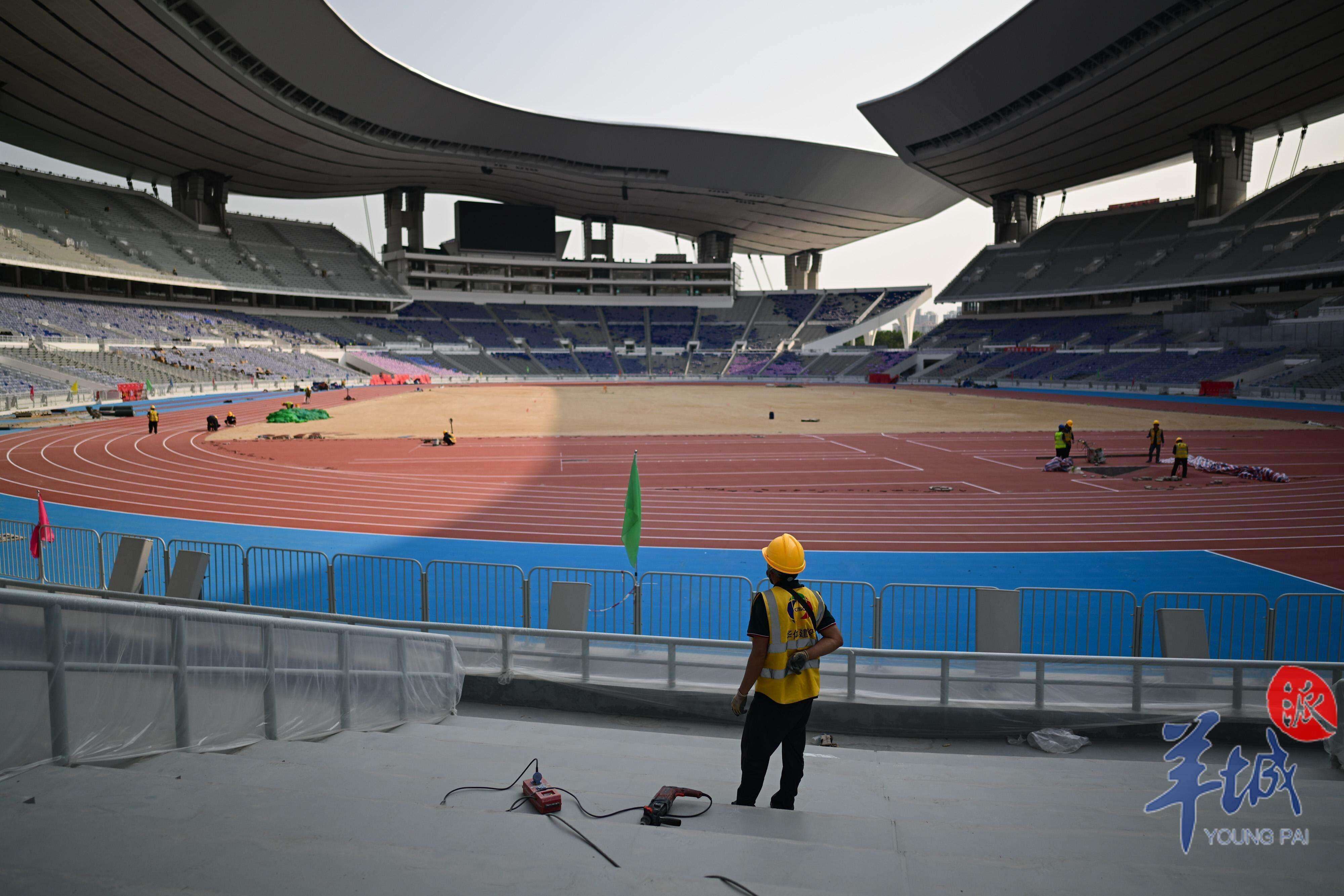 Καθώς πλησιάζουν οι 15οι Εθνικοί Αγώνες, η κατασκευή και η ανακαίνιση των αγωνιστικών εγκαταστάσεων επιταχύνεται. Στις 3 Απριλίου, δημοσιογράφοι συνόδευσαν τον Χε Τζινγκτάνγκ, ακαδημαϊκό της Κινεζικής Ακαδημίας Μηχανικής, σε επιτόπια επίσκεψη στο ολοκληρωμένο κύριο στάδιο, το Ολυμπιακό Αθλητικό Κέντρο της Γκουανγκντόνγκ, για να ενημερωθούν για τις σημαντικότερες πτυχές της ανακαίνισής του.