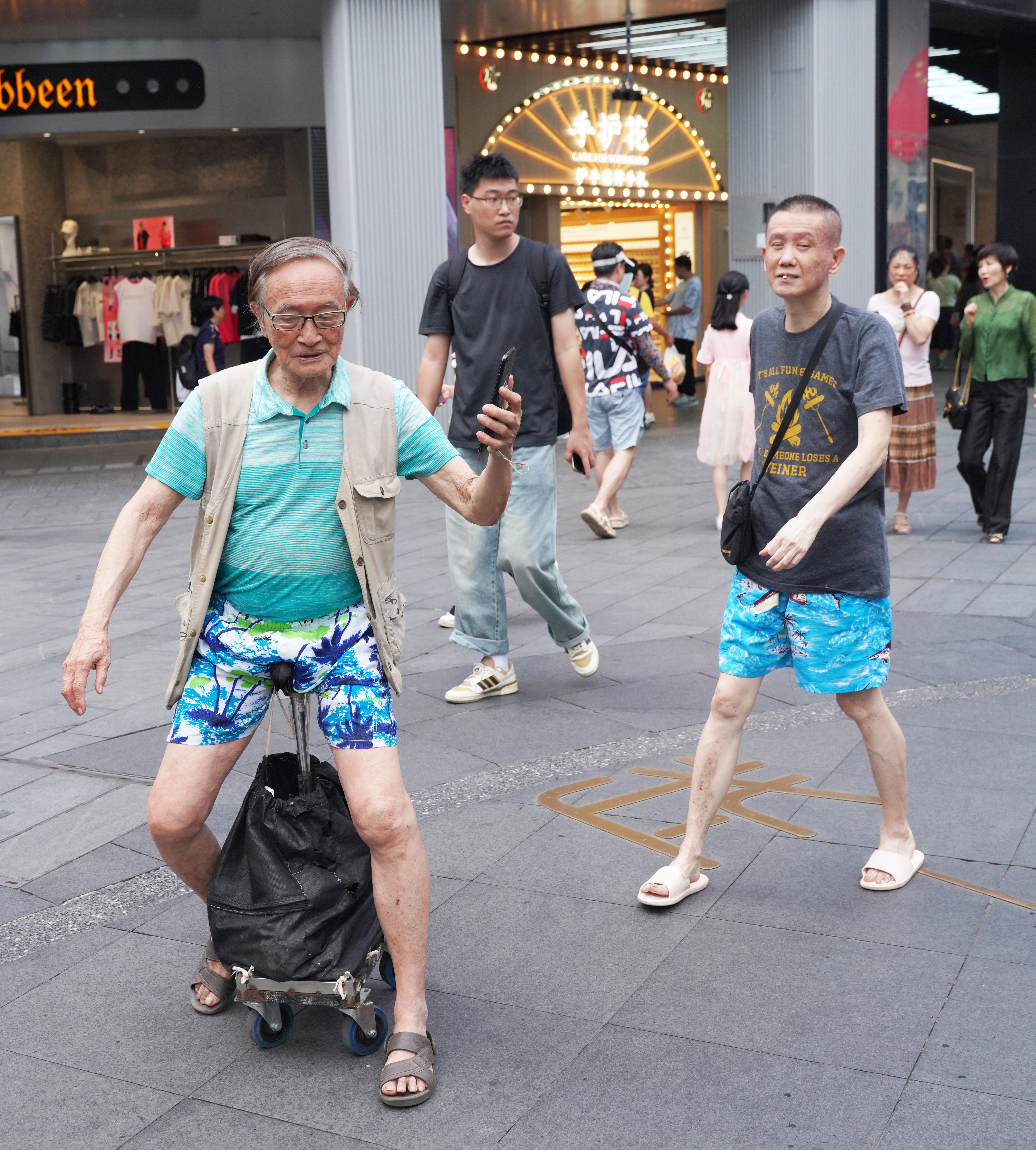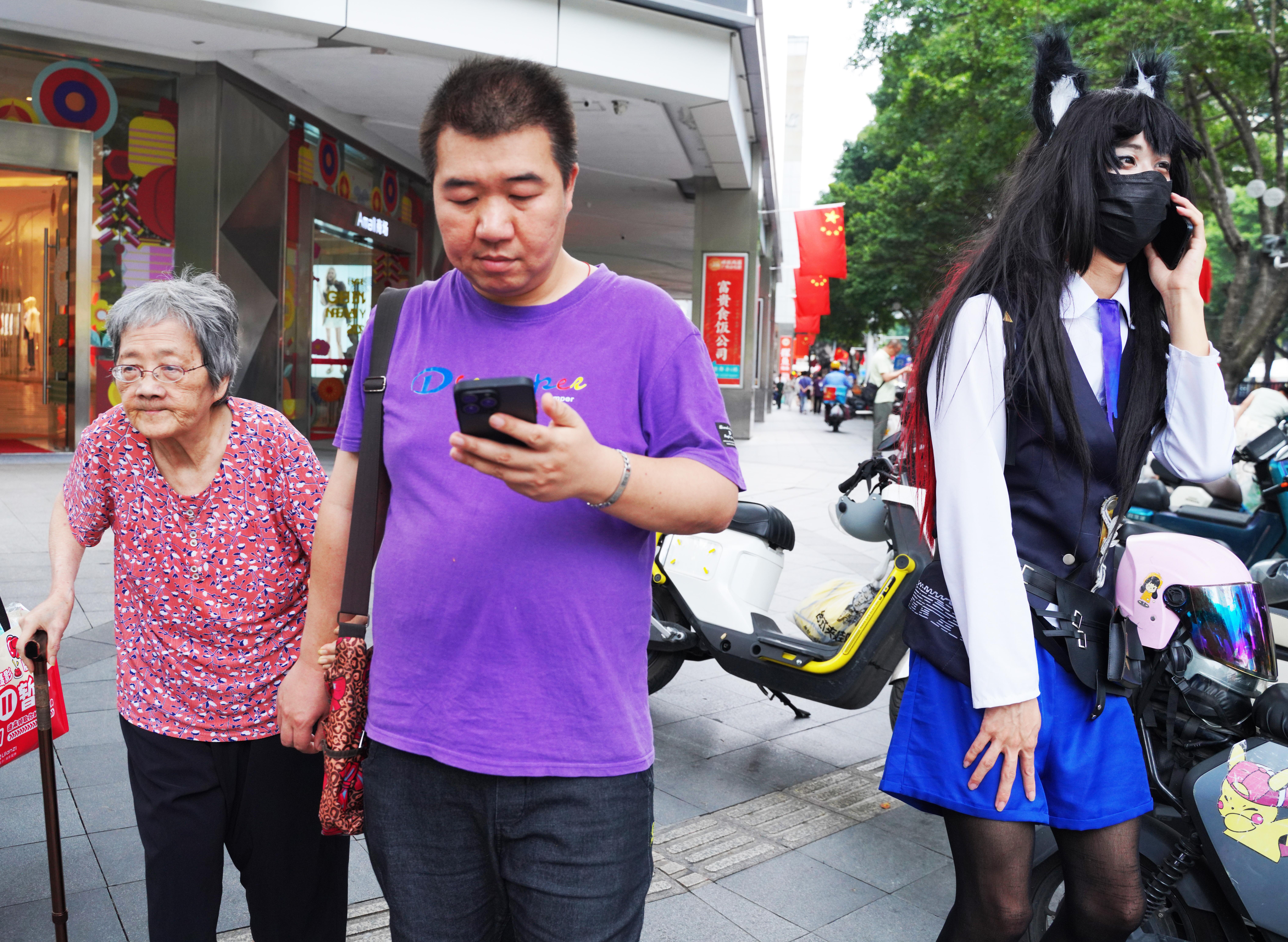 “五一”假期,广州街头人头攒动,春转夏季,也是穿着换季的美妙时光,摄影师看到:在广州逛街的游客没有什么清规戒律,你不觉得土,她也未必新潮,广州人穿衣着装,自己觉得合身舒服就是最好的时尚。