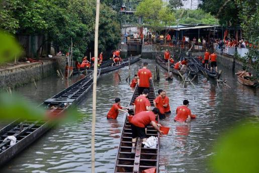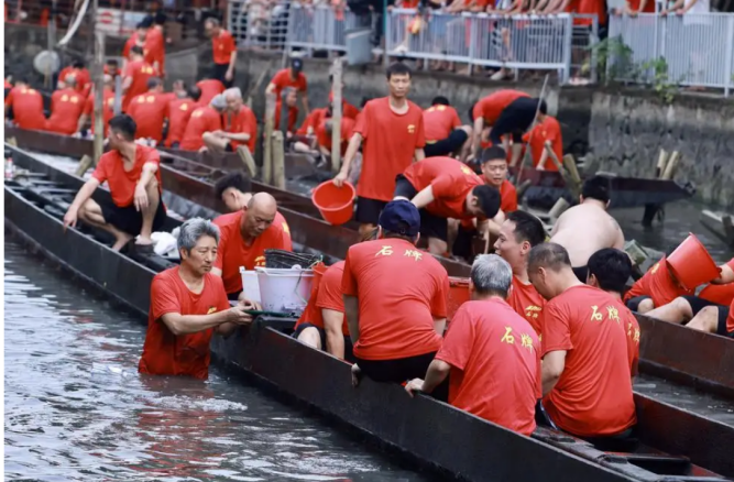 No dia 5 de maio, mais de cem remadores de barcos-dragão da vila de Shipai, em Guangzhou, reuniram-se na vila de Shuanggang, no distrito de Huangpu. Oito barcos-dragão que permaneceram inativos durante um ano voltaram à vida através dos esforços sincronizados dos remadores, com fogos de artifício a estalar e tambores cerimoniais a rufar pelas vias navegáveis. Após uma restauração cuidadosa, estes barcos-dragão em breve retornarão em toda a sua glória, prontos para competir e navegar pelas ondas durante o Festival dos Barcos-Dragão.