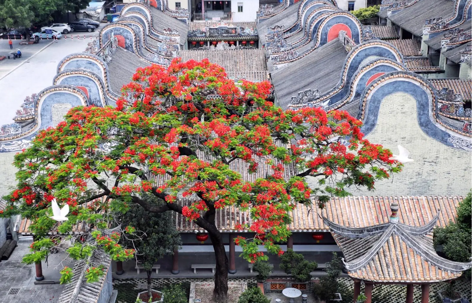 广州古祠凤凰木迎来盛花期