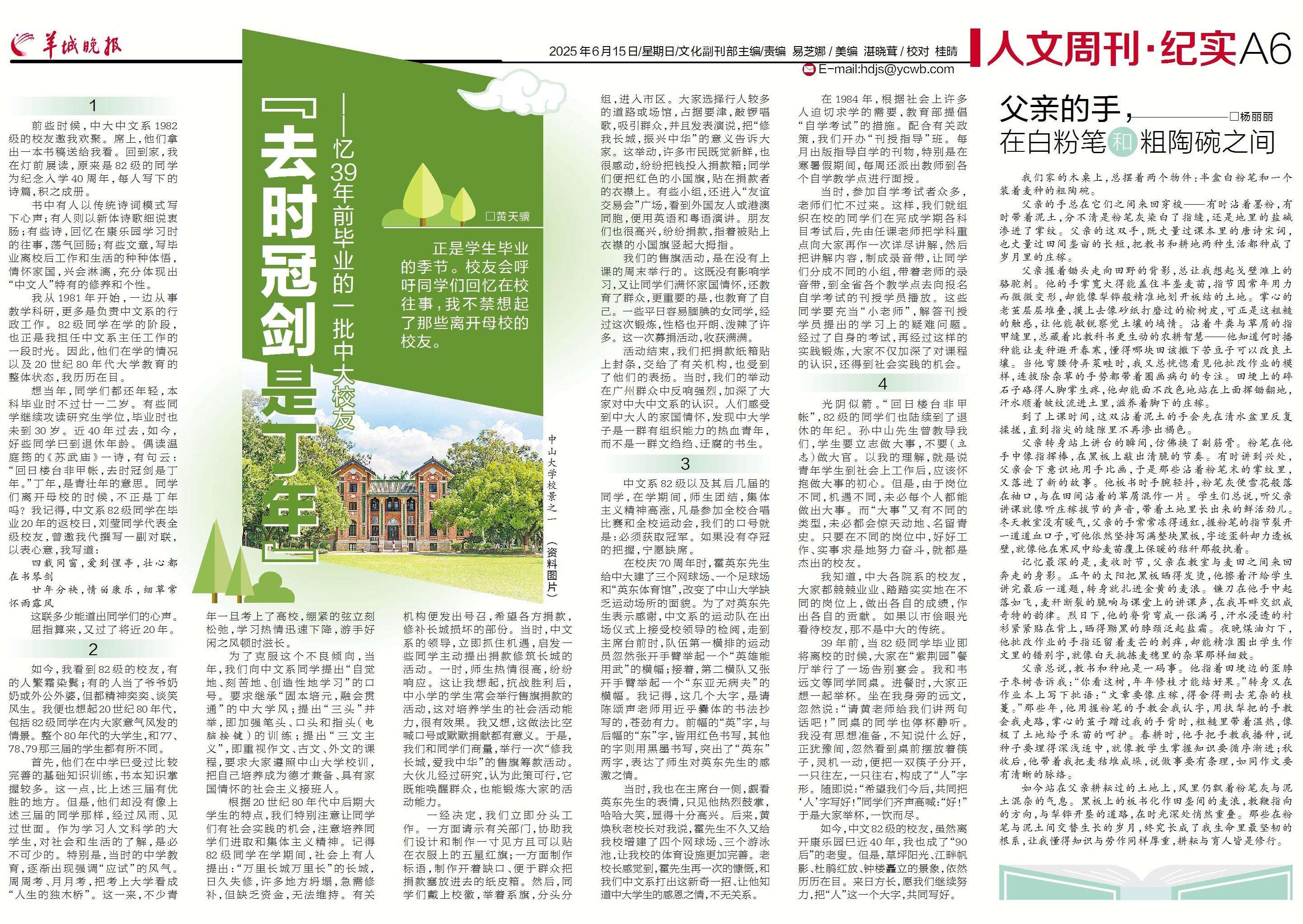 如今,中文82级的校友,虽然离开康乐园已近40年,我也成了“90后”的老叟。但是,草坪阳光、江畔帆影、杜鹃红放、钟楼矗立的景象,依然历历在目。来日方长,愿我们继续努力,把“人”这一个大字,共同写好。