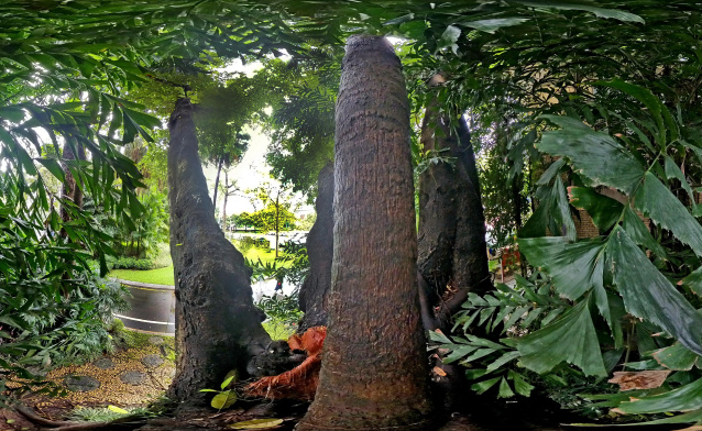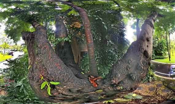 Have you ever seen the "Tree-Embracing-Tree" at Sun Yat-sen Memorial Hall?—a Ficus virens Aiton embracing a Chinese Fan Palm. It's a true natural marvel! No wonder the park erected a yellow wax stone tablet engraved with "Tree-Embracing-Tree".