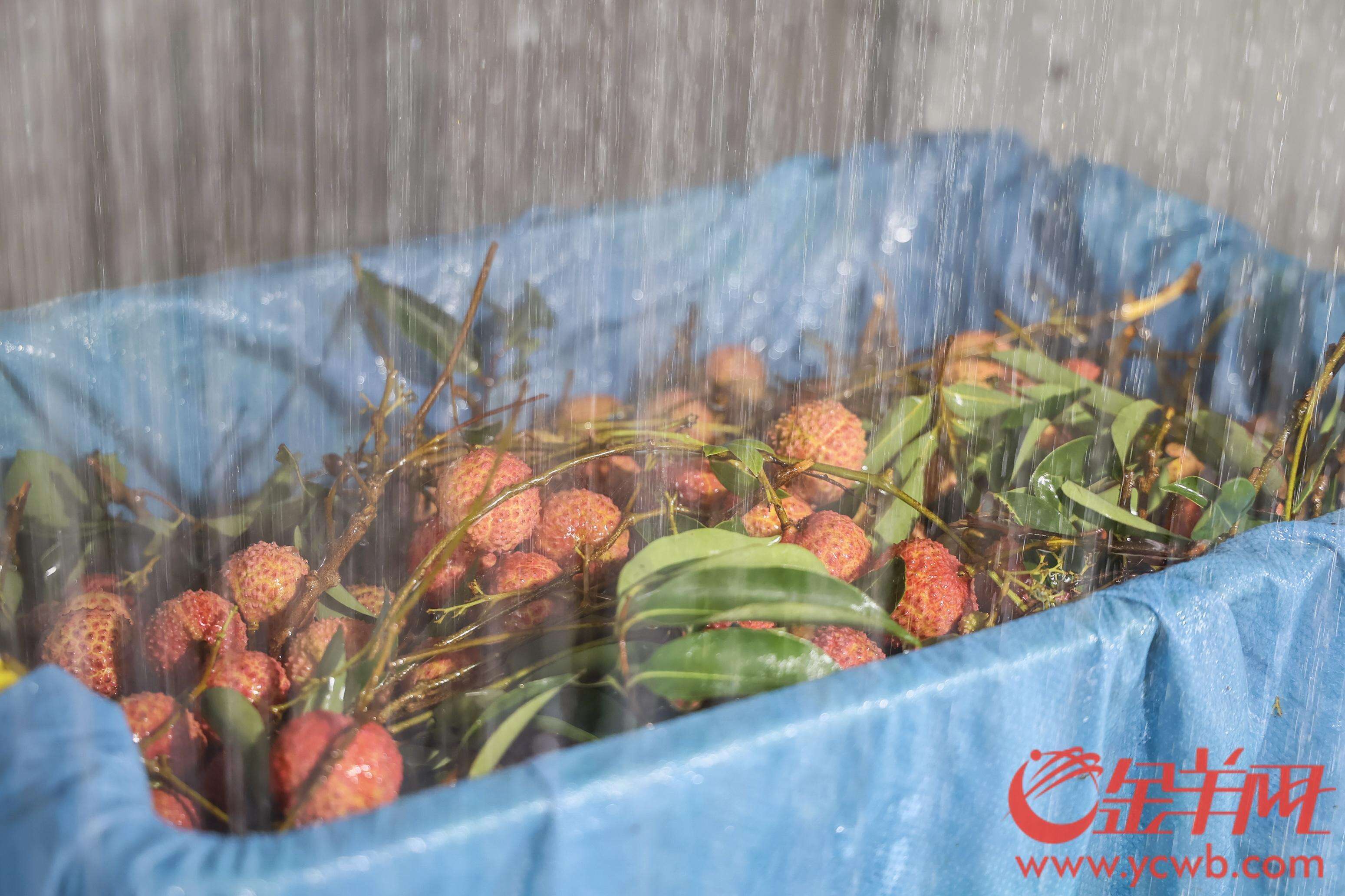 其后,无人运输车将会把采摘下来的荔枝运送到在荔枝采摘区旁的田头车间里。在这里,由华南农业大学郭嘉明教授团队研发的冰水喷淋保鲜设备正等着这些鲜美的果实。