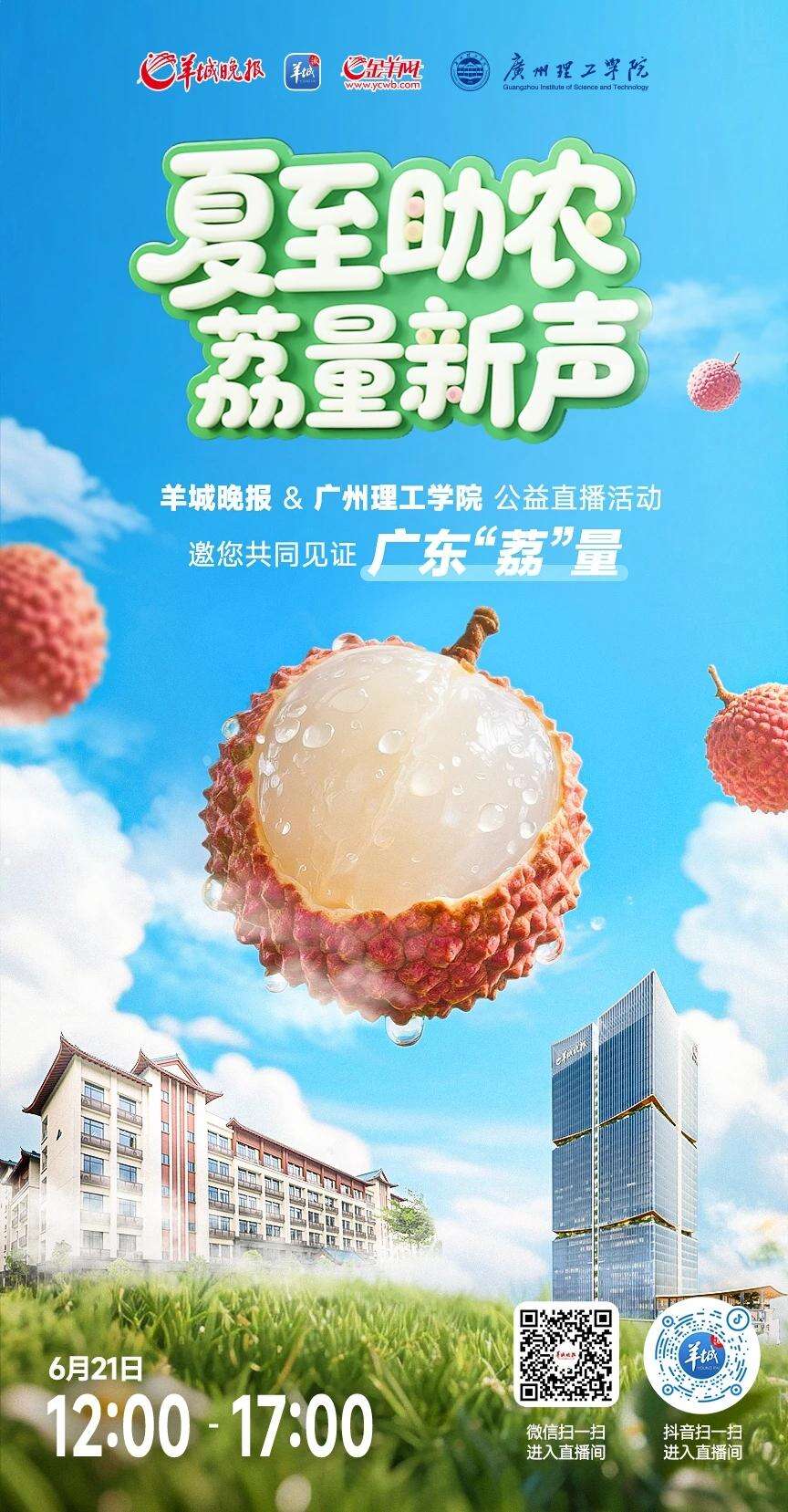 6月21日,让我们相约羊晚直播间,见证“荔”量青年勇挑大梁,参与公益助农,为广东荔枝打Call,为乡村振兴助力!