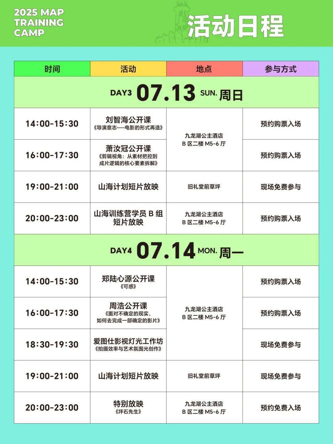 训练营期间,电影公开课、一对一工作坊、影人论坛、驻地创作、影片放映等一系列活动将陆续上演。最为引人瞩目的是,山海训练营还将举办公开提案大会,决选出山海计划年度10强青年导演并进行颁奖。