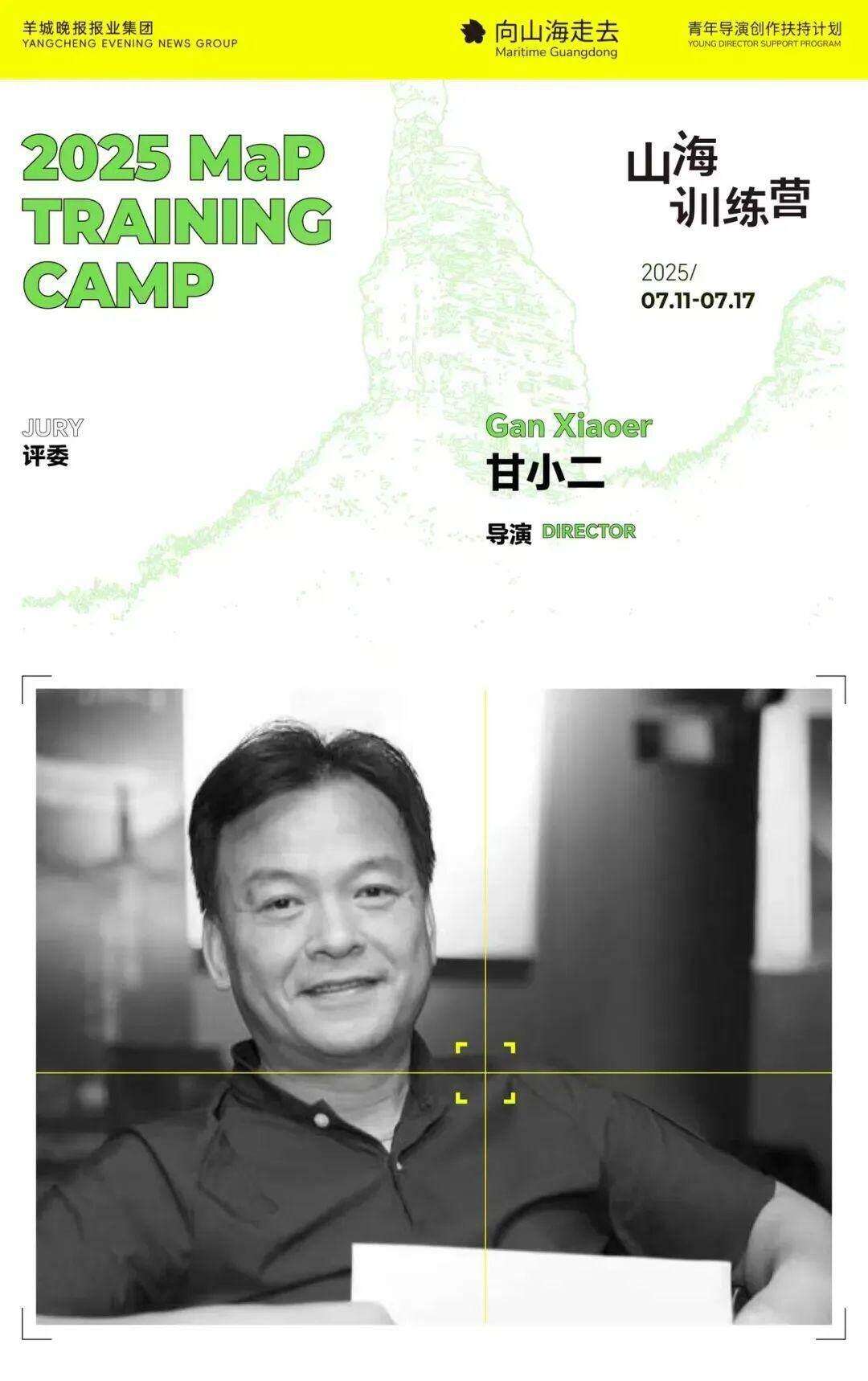 由羊城晚报报业集团主办、广州市花都区委宣传部支持的山海训练营将于7月11日至17日在广州中旅·阿那亚·九龙湖举办。本届山海训练营邀请到多位资深电影人驻营,和来自世界各地的青年电影人亲密交流,期间将举办电影公开课、电影工作坊、影片放映、驻地创作、公开提案大会等一系列活动。
