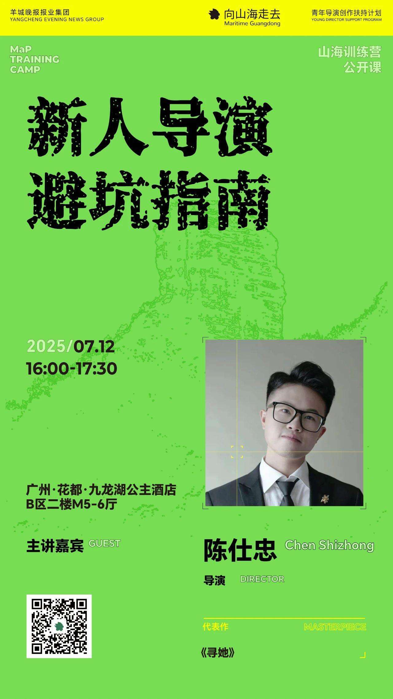 青年导演陈仕忠将带来公开课《新人导演避坑指南》,分享电影制作全流程中容易出错的环节及应对方法。