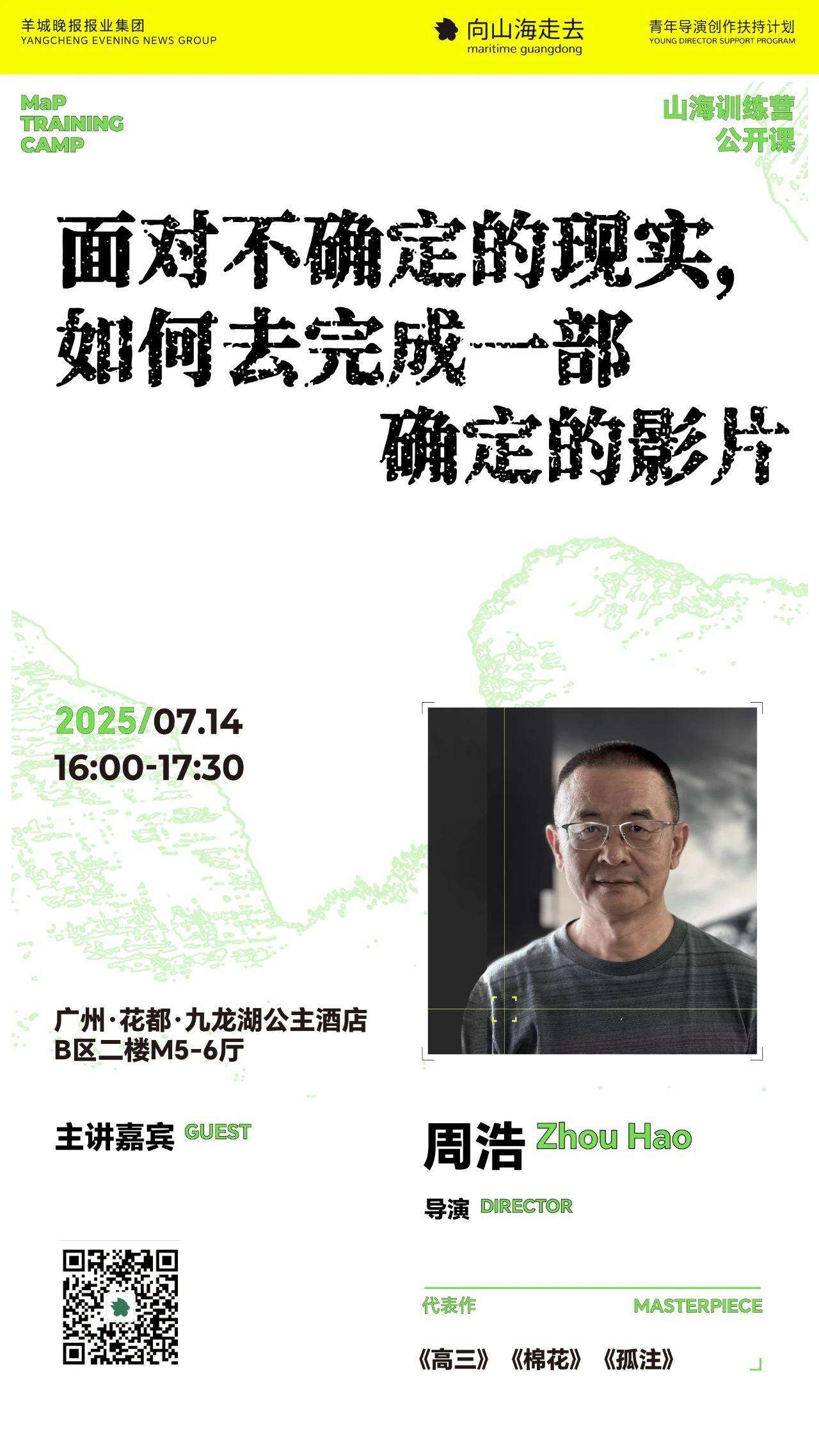 湾区共潮,再汇羊城。7月11日至17日,由羊城晚报报业集团主办的山海训练营将在广州中旅·阿那亚·九龙湖开营,开启为期七天的深度电影交流和创作之旅。