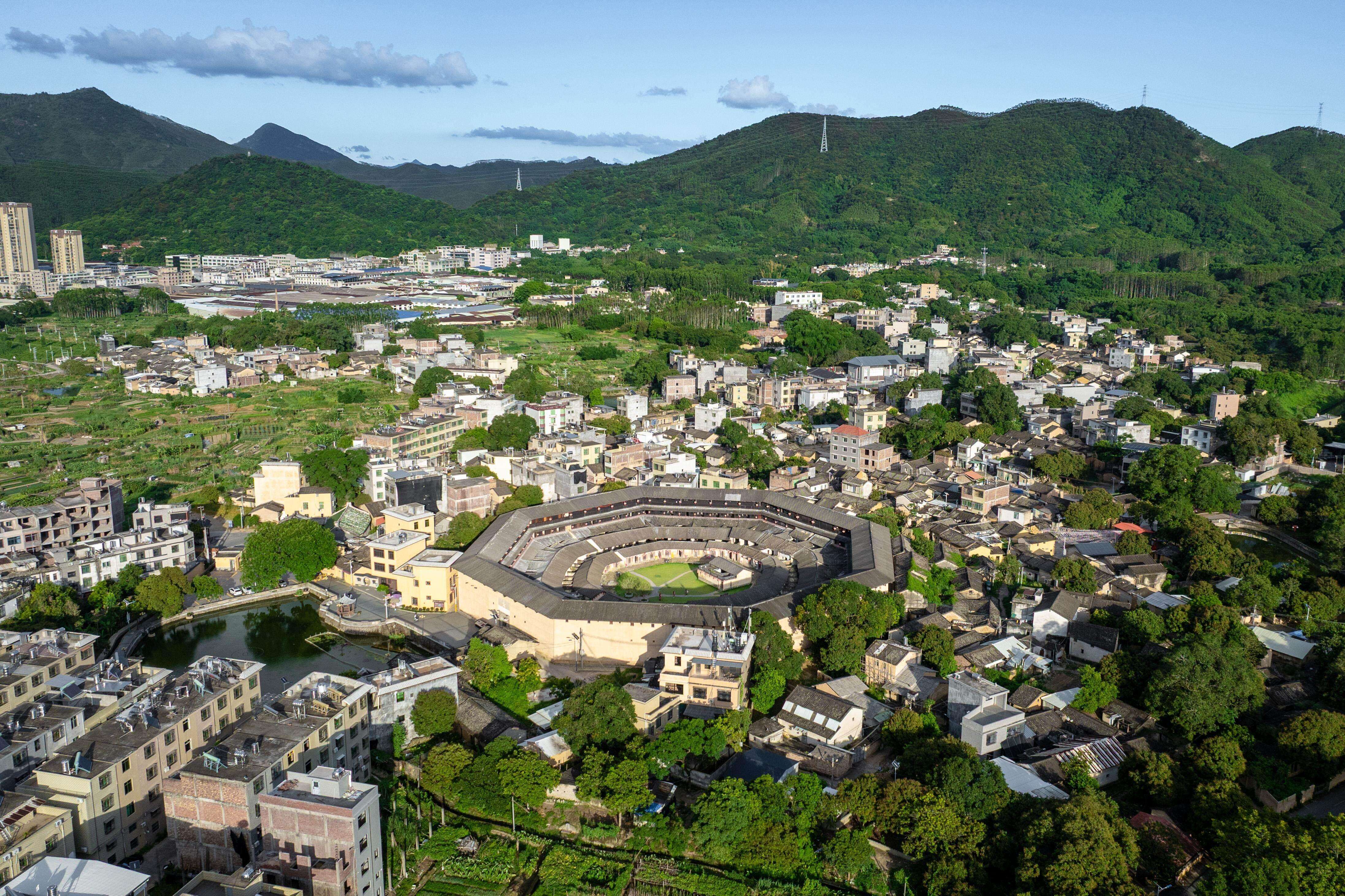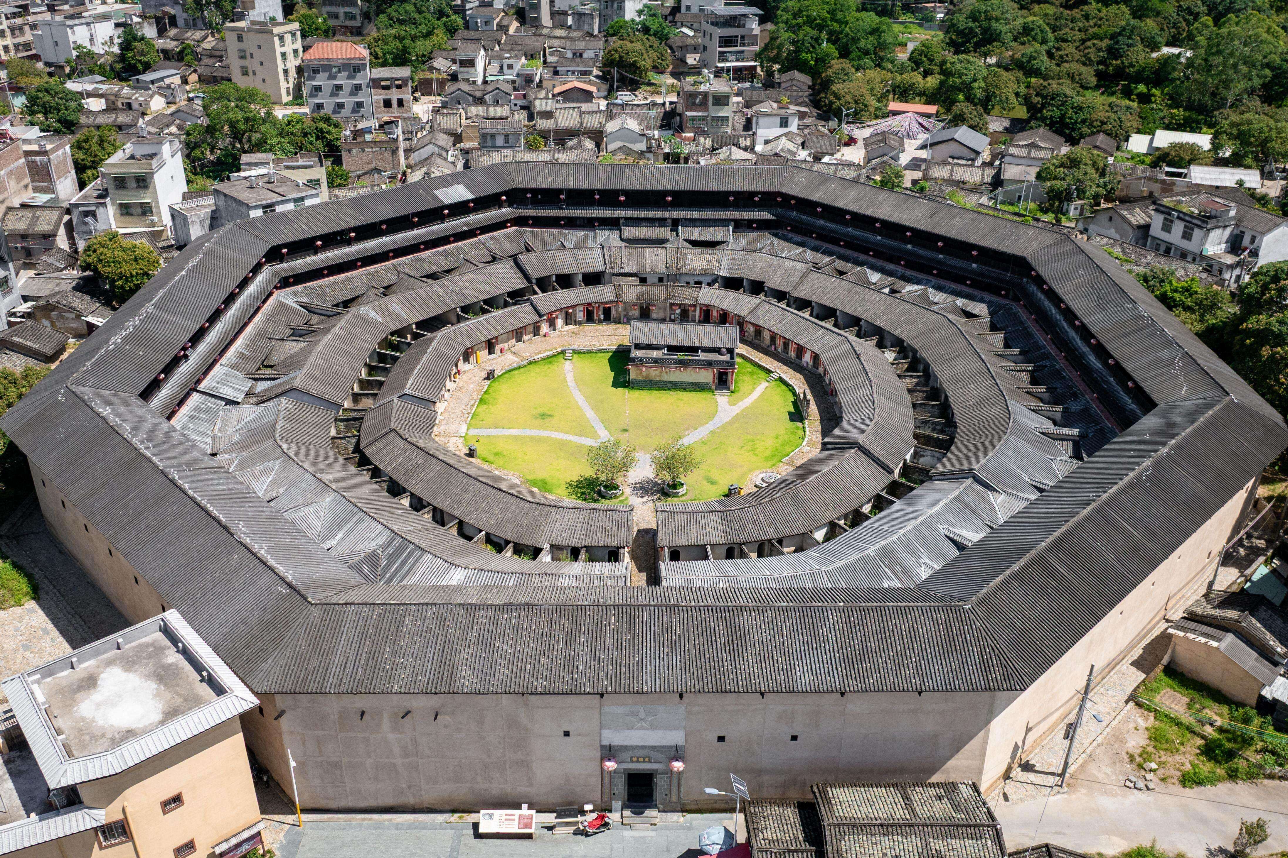 从高处俯瞰,八个梯形单元围合成一个面积上万平方米的正八边形。楼内每个开间皆被精心设计为三进两天井,前、中进为宽敞平房,后进则是三层高楼,错落间透出这座“中国迄今发现最大的八角形土楼”的古雅大方。2006年,它被列入第六批“全国重点文物保护单位”。