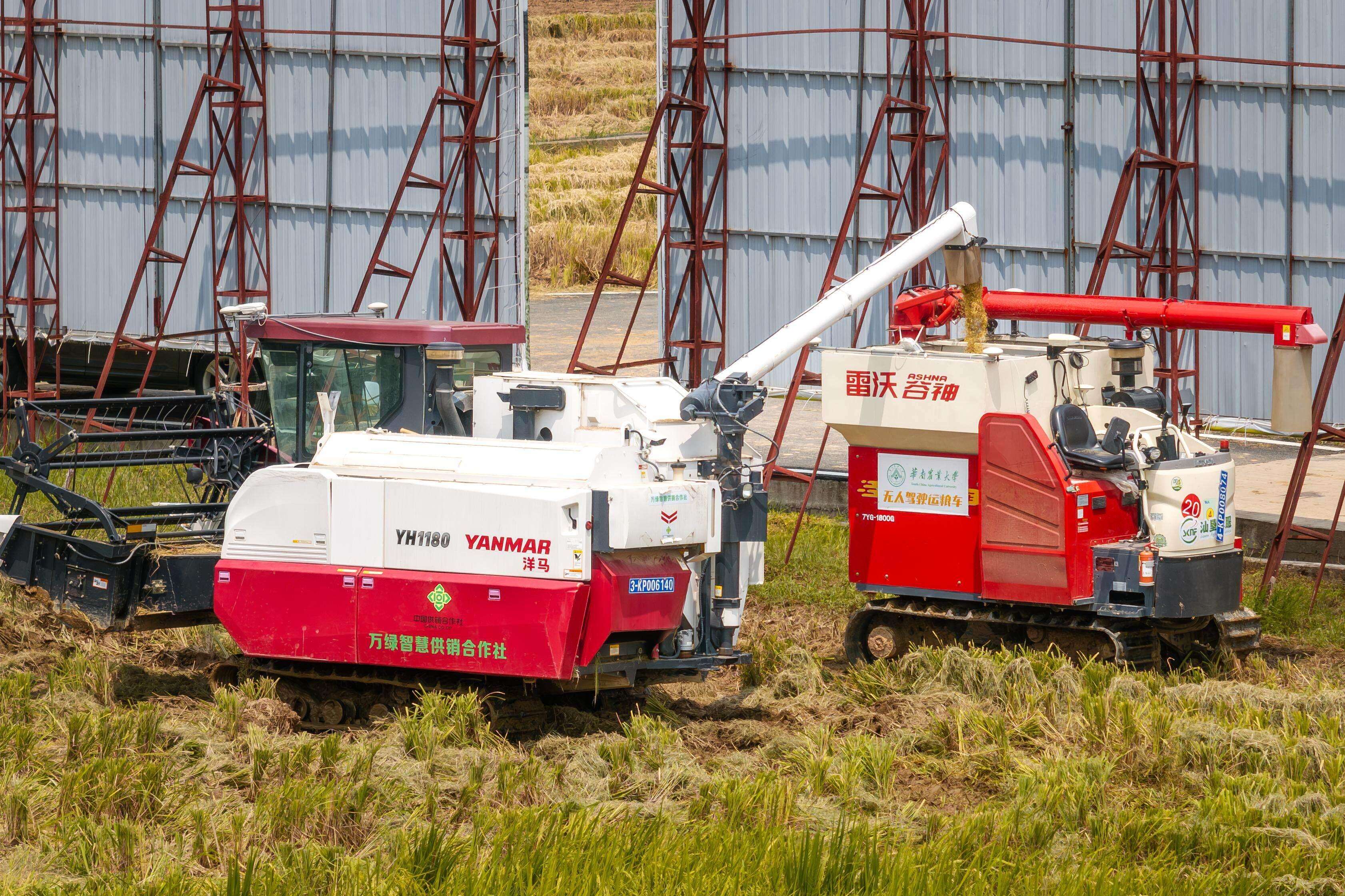 On July 15th, multiple unmanned harvesters were at full capacityto gather the early rice crop in Wanlv Unmanned Smart Farm in Xiaba Village, Liucheng Town, Dongyuan County, Heyuan City, marking the full-scale launch of the summer grain harvest in the region. According to local agricultural authorities, this year's rice yield at the farm is expected to reach 600 kilograms per mu, signaling another year of abundant harvest.