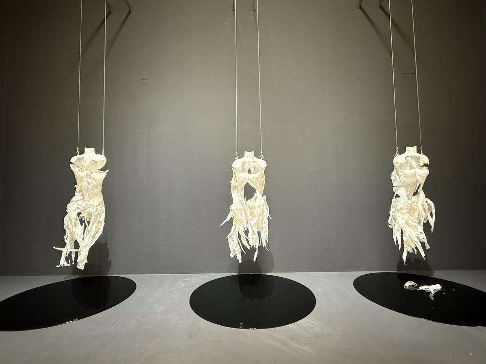 展区内,广东艺术家薛峰的《二个澳门》用地理学的方式探讨城市如何被资本和欲望塑形,并由此提问:“澳门在中国的位置究竟是什么?”另一边,行为艺术家巴特·赫思(Bart Hess)来自荷兰,他的作品以蜡包裹舞者,让蜡成为“即场造衣”的材质,令观众直面身体、材料与观看的张力。