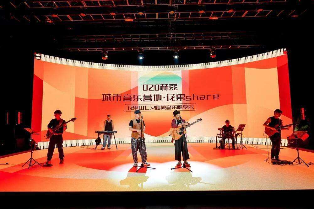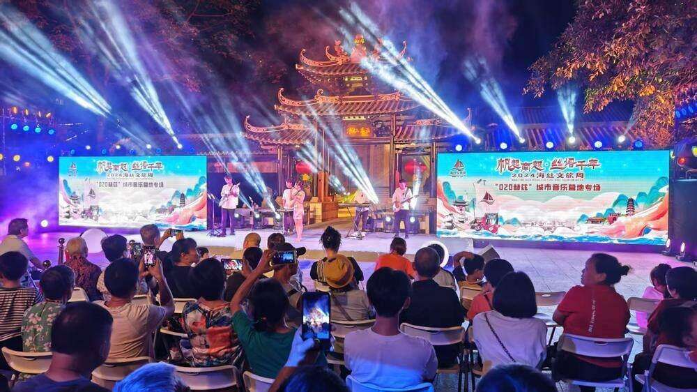 On a summer evening at Dashatou Wharf, the river breeze carried the sound of guitar strings and crowd sing-along across the Pearl River. A young band performed original songs on the stage of "020 Hz" Urban Music Camp, while the audience waved their cell phone flashlights along with the melody. Warm light of lanterns from a cultural and creative market and neon lights from passing pleasure boats complement each other.