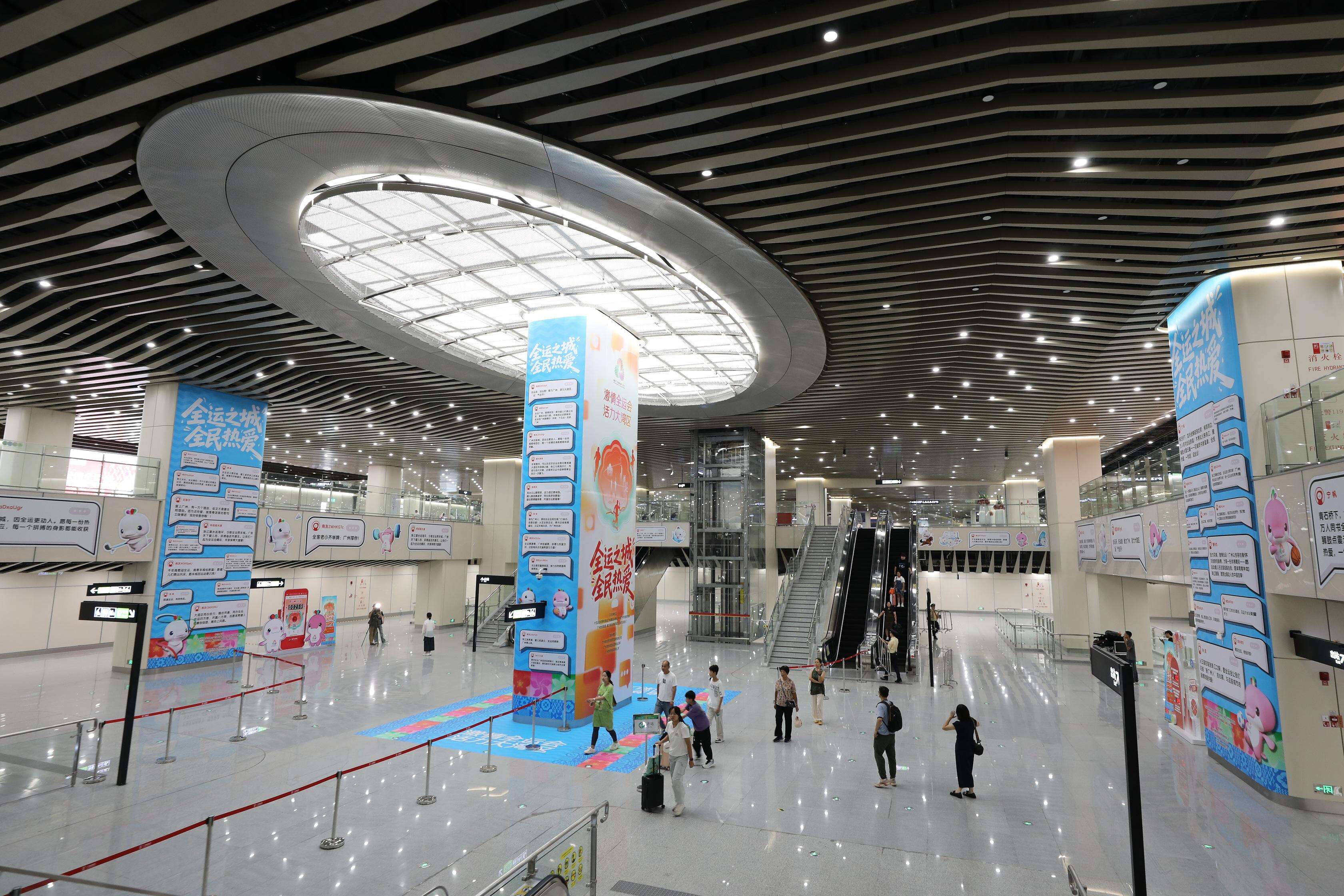 Guangzhou has additionally created a themedexhibition space at the Metro Station of Guangzhou Baiyun Railway Station, titled "A National‑Games City Loved by All." The space, unveiled on August1st, features nearly 10‑metre‑high columns decorated as "check‑in walls," showcasing selected public messages and well‑wishes gathered through a citizen engagement campaign.