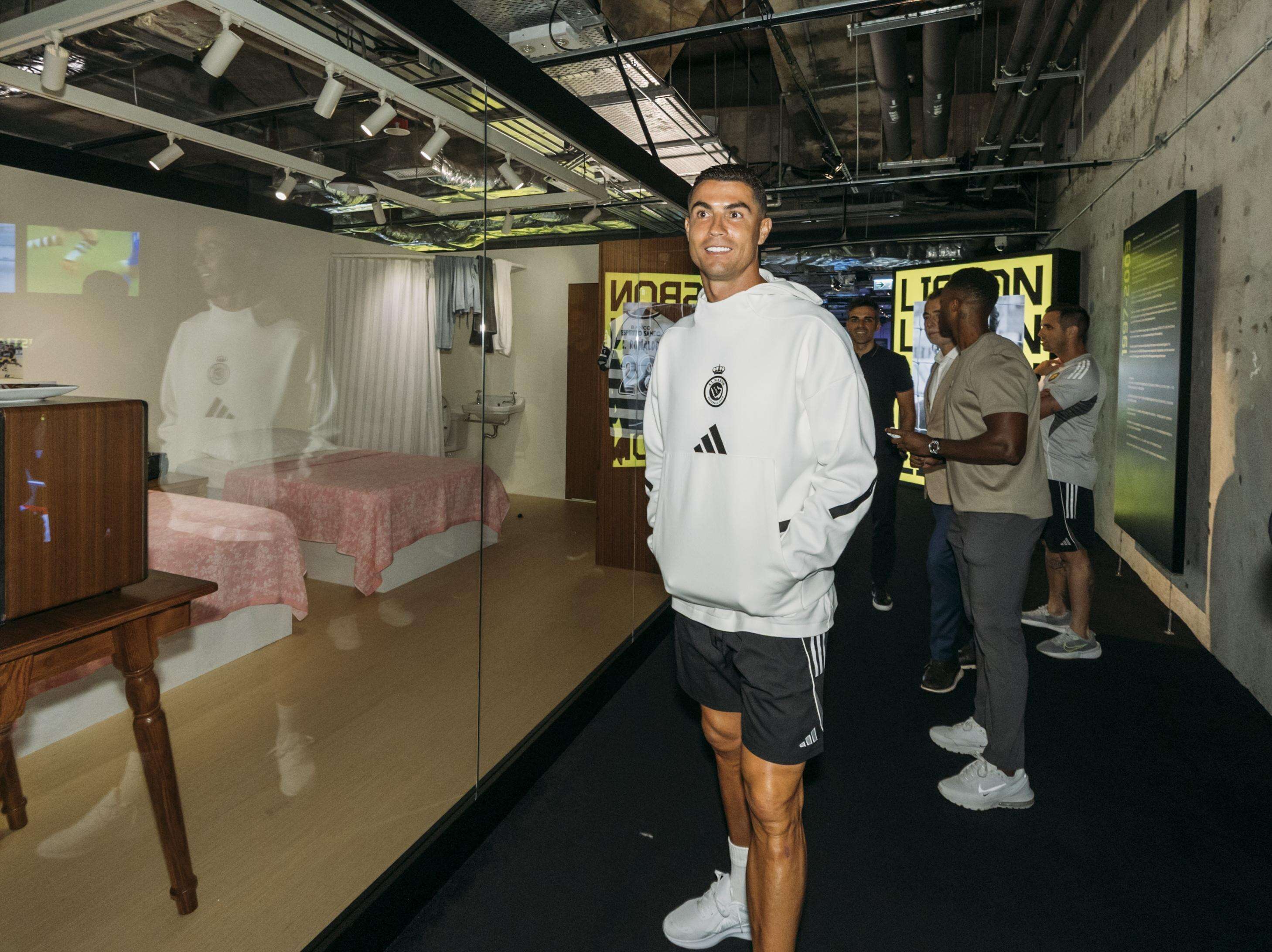 在参观沙特利雅得胜利足球俱乐部专属展区时,C朗笑言“这个展区应该要再大一点!”言语间流露出对球队的深厚情感与自信。