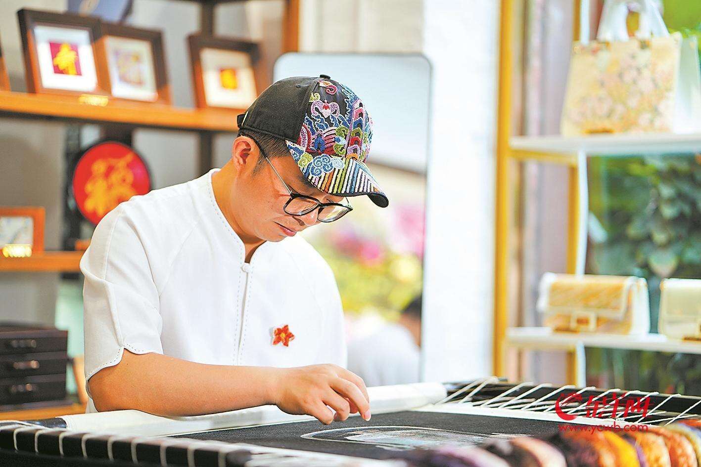 2010年,王新元用广绣赚到人生第一桶金,这让他信心大增。他的工作室将广绣融入帽子、首饰盒、蓝牙音响等生活产品,让广绣艺术走出“画框”,走进日常。