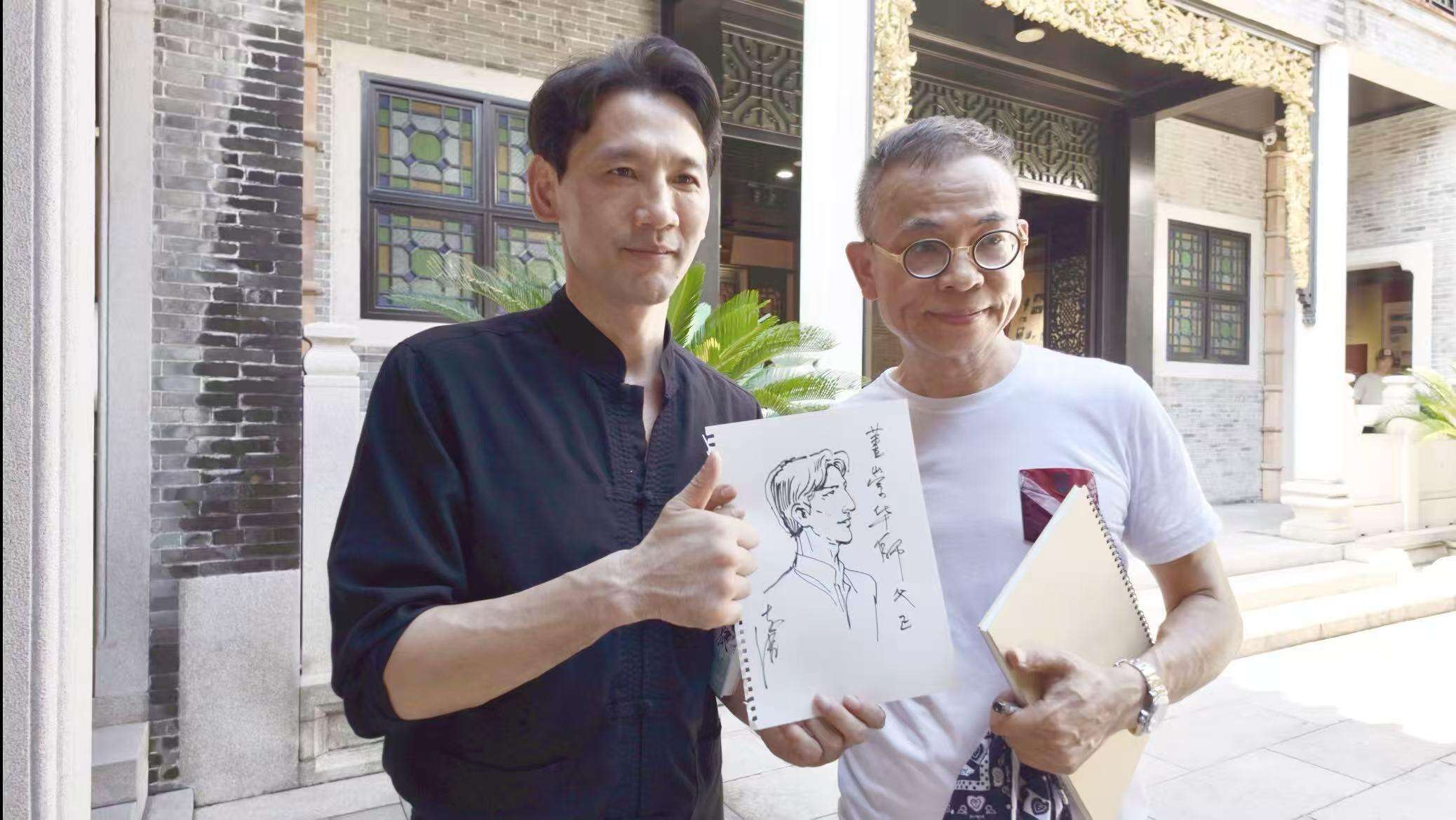 8月26日下午,“漫睇大湾区”采风团走进佛山叶问宗师馆。画了二十多年武侠人物的李志清首次体验咏春拳,向佛山叶问咏春第二代传人董崇华学习打木桩。他说:“我从小接触武侠,但直到亲眼看见董师傅演练,我才真切体会到那种劲道。”很快,他便在速写中捕捉到咏春神韵,“每一个木桩、每一个动作都有自己的温度。”李志清坦言,采风写生是他最喜欢的创作方式,岭南派讲究“搜尽奇锋打草稿”,重在再现大自然的真实。