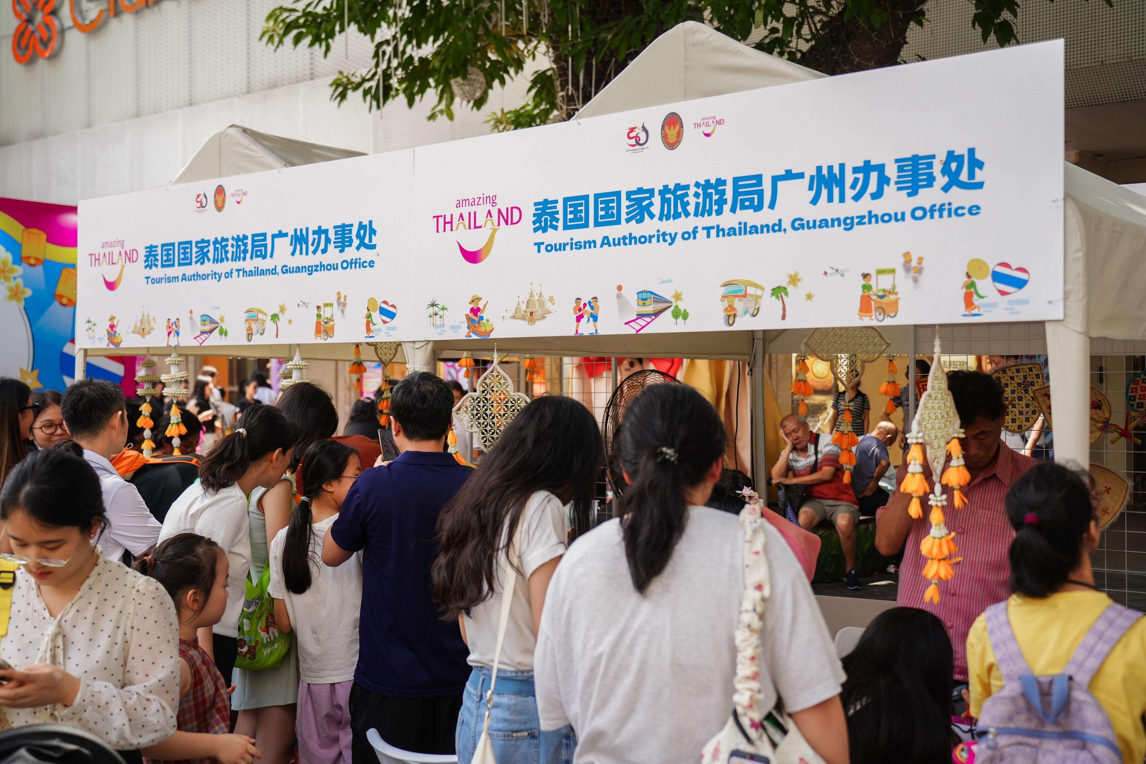 据悉,本次活动致力于向广州市及华南地区公众全方位展示泰国形象,内容设置上涵盖了广为人知的泰国传统元素,亦重点推介了泰国文化与创意经济等新兴领域。现场除了超过30个泰国商品与美食展位,泰拳表演、泰国传统舞蹈表演、泰国新生代艺人演出、有奖互动游戏、DIY工坊、泰式烹饪教学以及中泰建交50周年主题展览等丰富活动也吸引了众多市民游客驻足。