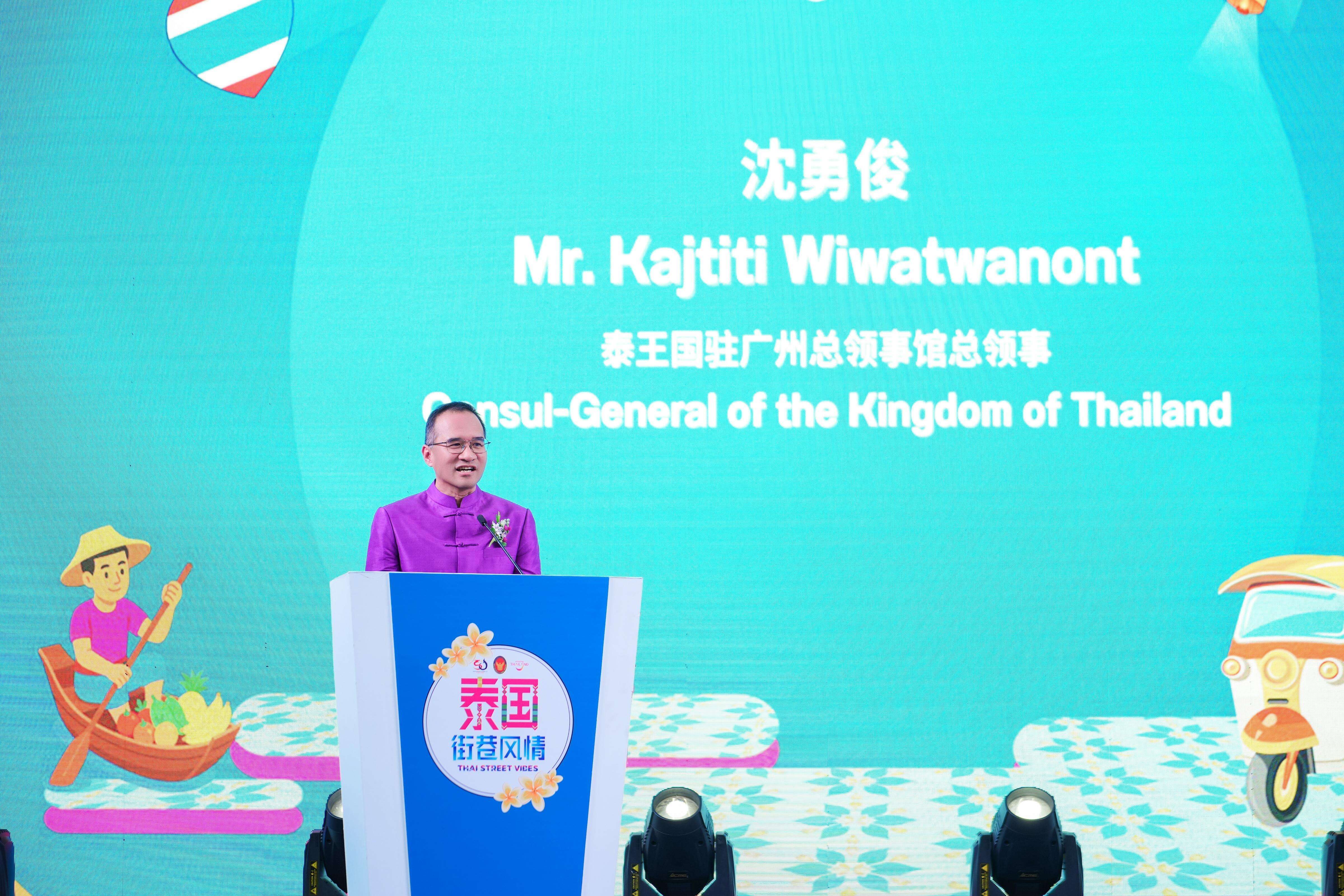 泰王国驻广州总领事沈勇俊在致辞时表示,此次活动是中泰建交50周年系列庆祝活动的重要组成部分。他强调,广东省是中国经济贸易、科技创新领域最具活力及消费能力最强的地区之一,寄望“泰国街巷风情”活动能进一步促进两国人民在相互理解、商业机遇与旅游互访方面的交流,为巩固两国友好关系作出持续贡献。