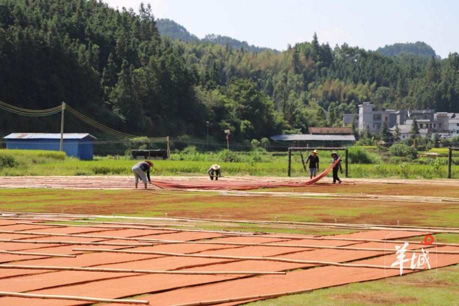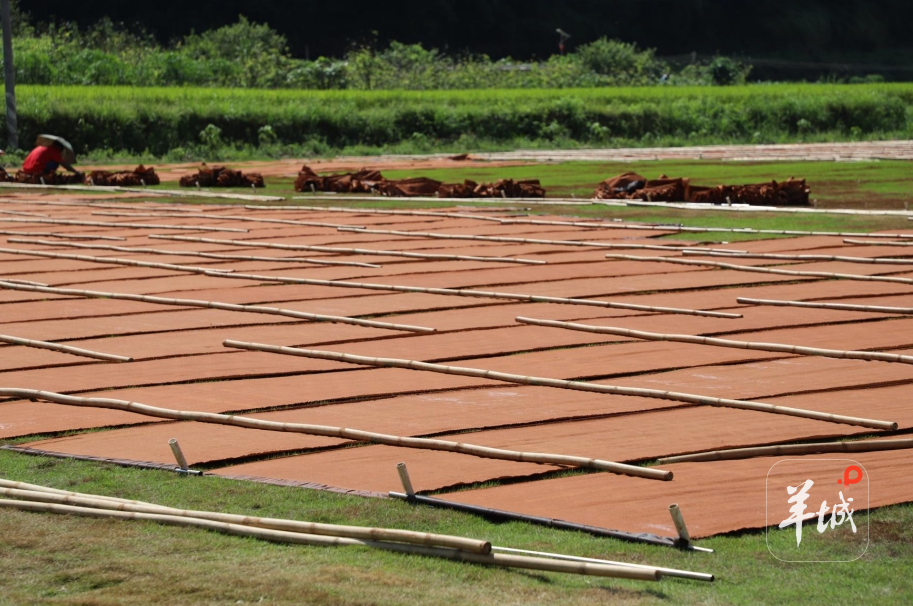 9月2日上午,连山永和镇蒙洞村的空气里飘着淡淡的薯莨香——壮锦瑶绣古法香云纱融合创新基地晒莨厂正式启新,竹竿上舒展的香云纱泛着温润赭光,壮锦瑶绣的精致纹样隐约其间。
