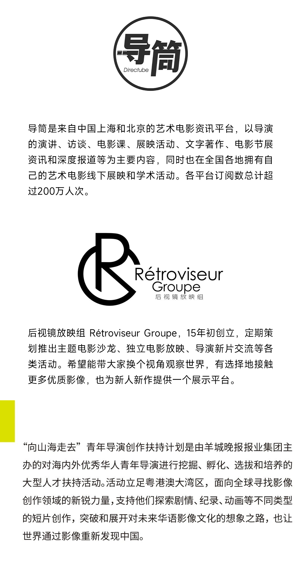 山海计划全球路演 · 上海站巡展由羊城晚报、导筒、8号桥与后视镜放映组联合主办。以“地缘影像月”为线索,将镜头对准珠江三角洲——那片既是地理单元又是文化方法的土地。我们试图通过影像,打开一种“南方以南”的观察方式:潮湿、鲜活、混杂,且始终处于流动的叙事之中。