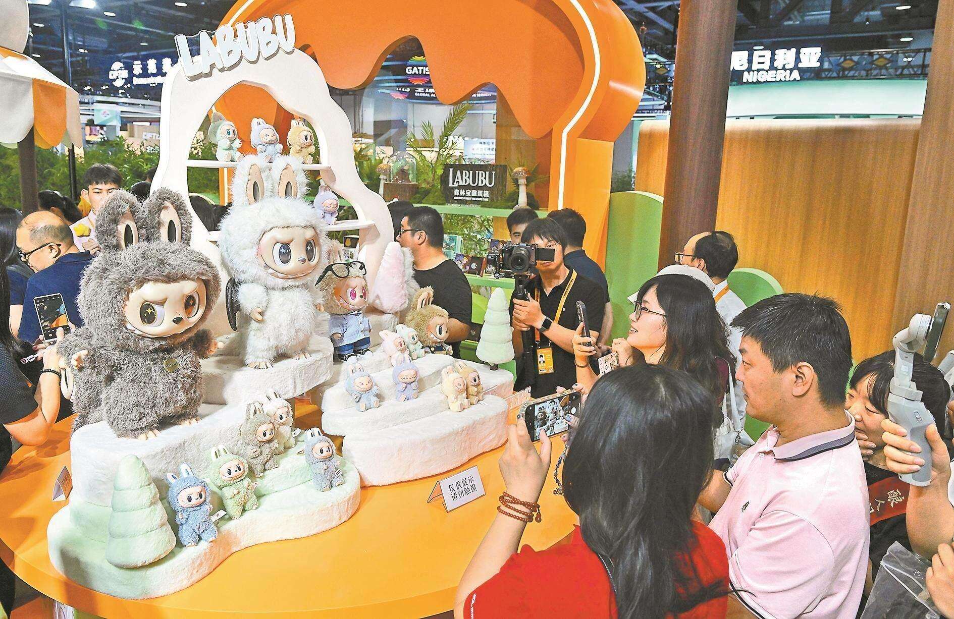 The Guangdong trade delegation, featuring more than 30 representative enterprises from nine cities including Guangzhou and Shenzhen, presents latest innovations at the thematic exhibition, which focus on three key areas: artificial intelligence, digital entertainment, and digital technology, highlighting a series of cutting-edge achievements. In the AI section, the robotstar team draws wide attention. Guangzhou-based CVTE showcases its industrial-grade quadruped robot MAXHUB X7, capable of performing load-bearing inspections in extreme temperatures ranging from −20°C to 40°C. Dongguan Direct Drive Technology Limited demonstrates the direct-drive wheeled-leg robots"Xingtian" and "TITA," impressing audiences with their "transforming" skills and agile cross-terrain operations. EHang's EH216-S becomes the world's first passenger-carrying pilotless eVTOL aircraft to obtain an airworthiness certificate, with a vivid on-site simulation of urban air mobility. From ground operations to low-altitude flights, from stand-alone intelligence to cooperative multi-robot operations, Guangdong's AI enterprises showcase their full-chain, all-scenario intelligent manufacturing capabilities.
