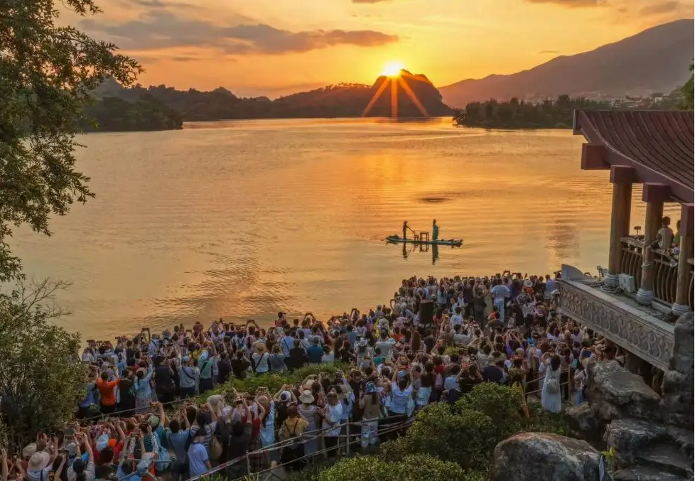 Lingnan: Beauty Beyond Borders | The 2025 "Seven Star Crags Only — Buddha Holding the Sun" Autumn Equinox Viewing Season in Zhaoqing’s Xinghu Lakeruns from September 13 to 23. As a unique astronomical and geographical wonder of Xinghu Lake, the highlight of this season—the "Buddha Holding the Sun"—will reach its peak on September 16, when the setting sun aligns perfectly into the mouth of a natural rock formation resembling a reclining Buddha, creating the year’s most iconic celestial scene. It is expected to attract domestic and international tourists, astronomy enthusiasts, and photography lovers to gather and capture this moment.