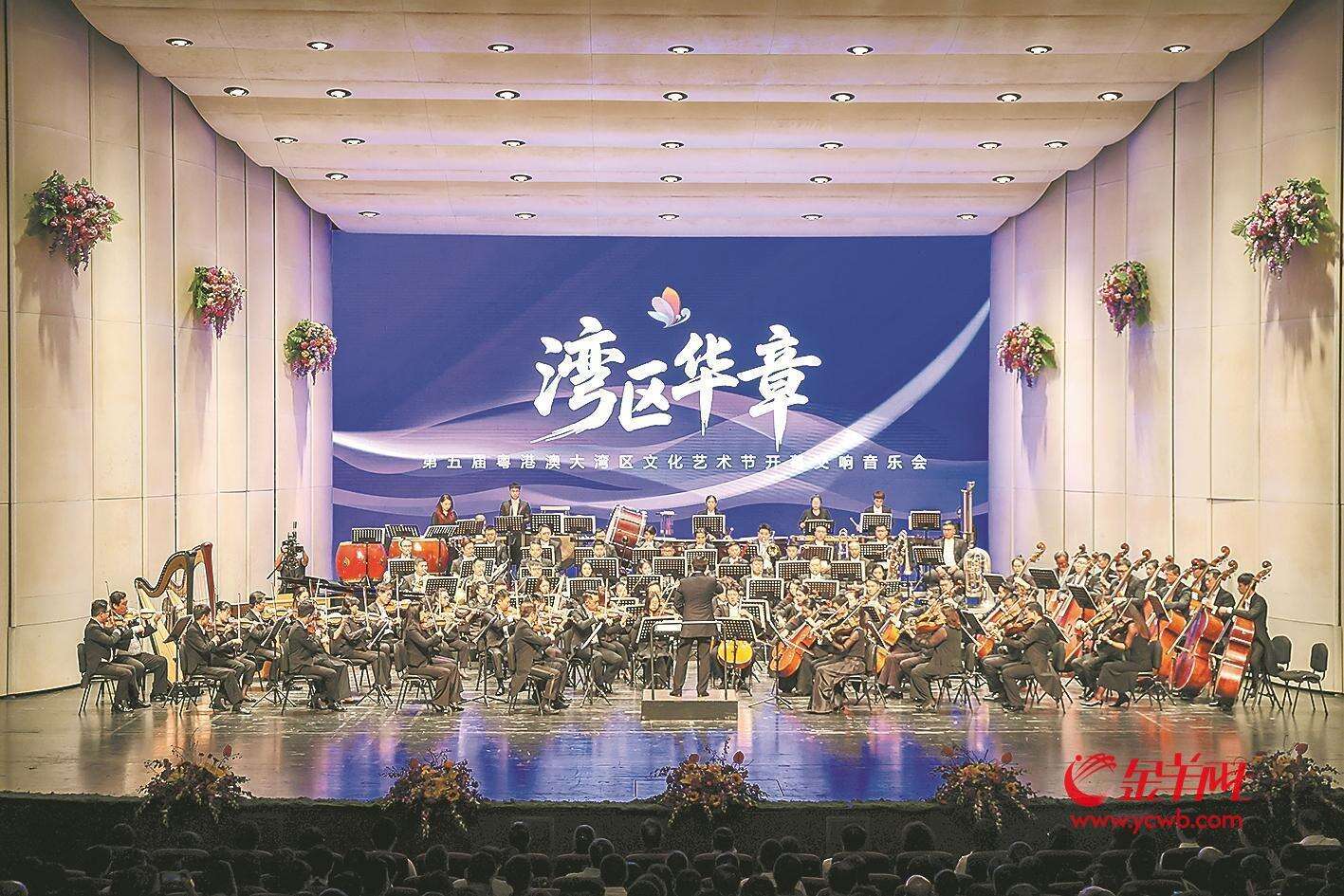 羊城晚报全媒体记者 记者艾修煜报道:16日晚,由文化和旅游部、广东省人民政府、香港特别行政区政府、澳门特别行政区政府共同主办的第五届粤港澳大湾区文化艺术节开幕式及开幕演出《湾区华章》主题交响音乐会在广州大剧院盛大举行。《湾区畅想》《珠江惊雷》《赛龙夺锦》《白云晚望》等7部原创交响乐上演,以音乐形式展现了大湾区的文化底蕴、时代新貌以及家国情怀。
