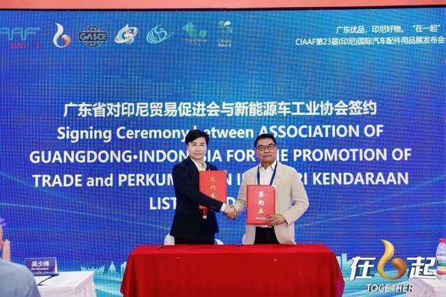 在与会嘉宾的共同见证下,广东省对印尼贸易促进会与印尼新能源车工业协会现场签署了合作协议。双方将共同致力于推进新能源汽车产业链的资源整合、技术交流与市场开拓,促进两国产业优势互补。