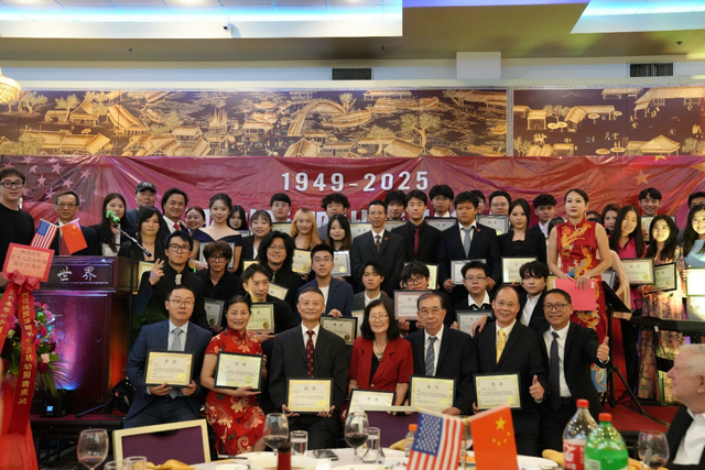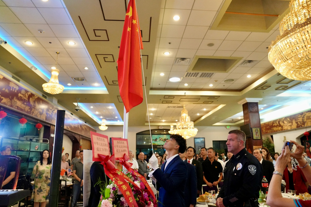 当地时间9月20日晚,亚利桑那州华人华侨举行升旗典礼和国庆晚宴,庆祝中华人民共和国成立76周年,并纪念中国人民抗日战争暨世界反法西斯战争胜利80周年。中国驻洛杉矶总领事馆副总领事黄洪江率总领馆王瑞祥、田林琳、黄晨3位领事到场,当地政要、侨领及社会各界代表近600人共同出席了这场盛大庆典。