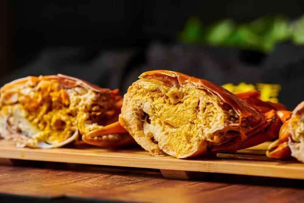 广东中山南朗崖口村位于咸淡水交界处,盛产各类海鲜。其中,崖口青蟹以肉质肥美、体型魁梧、肉多壳薄而享誉珠三角。一只青蟹从幼体长至成年,要经历10多次的蜕变。在青蟹脱壳的不同阶段中,产生了市面上的水蟹、肉蟹、膏蟹、黄油蟹、重皮蟹等品种。一百只蟹只有不到1%的机会产生一只黄油蟹,膏油渗透肌理,通体鎏金,清蒸后啜一口甘香如乳酪,身价可逾千元。正值“少女期”的母青蟹又叫做奄仔蟹,在中秋前后是最肥美的时候,蟹膏入口即溶,浓醇而不腻,肉细又清甜。食客倚坐红树林畔,就着海风剥开蟹壳,山海之味在姜醋间迸发。