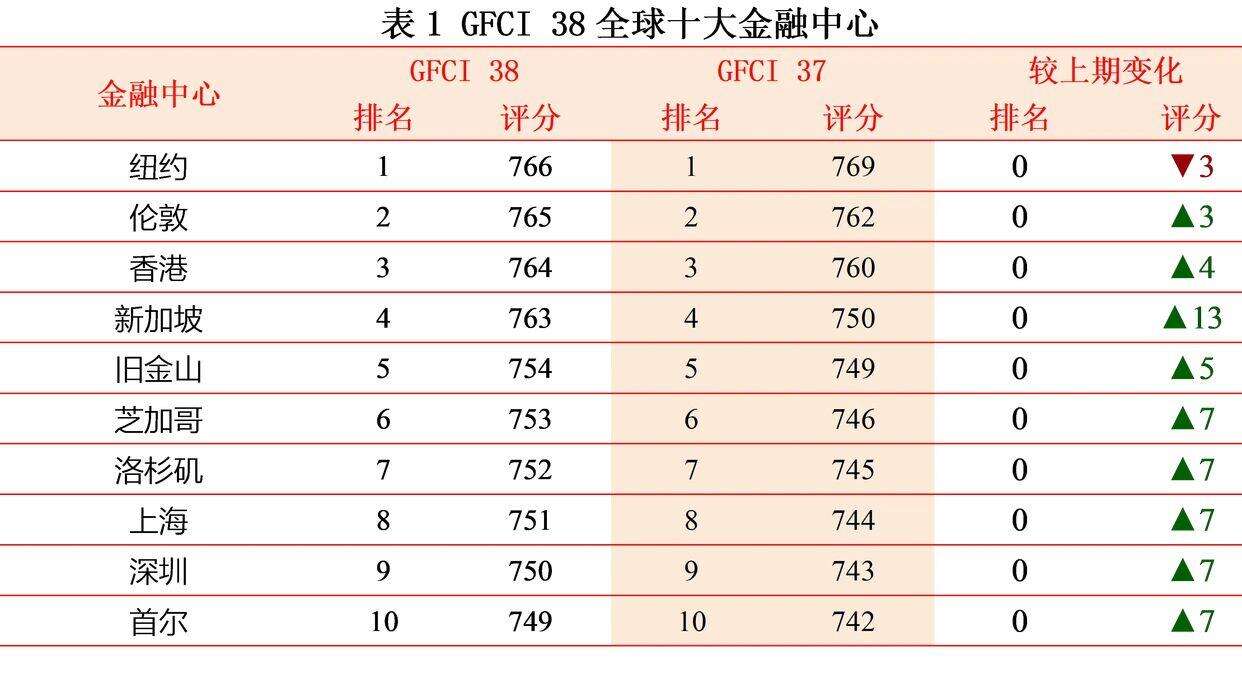 英国Z/Yen集团与中国(深圳)综合开发研究院昨日(25日)联合发布第38期《全球金融中心指数》报告,香港的整体评分上升4分至764分,继续位列全球第三,亚太区第一,与位列第一的纽约和第二的伦敦的分数差距,分别收窄至2分和1分。