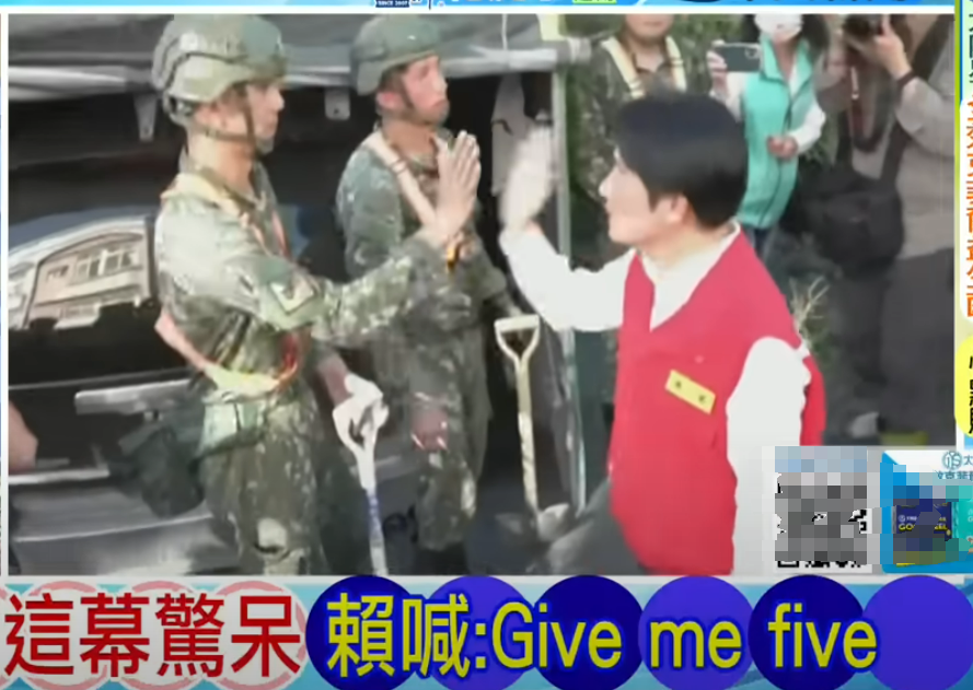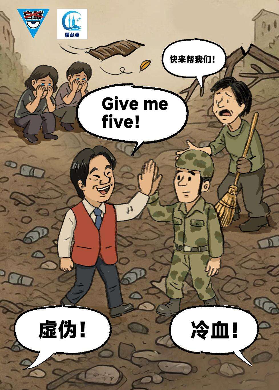 还有网友发现在新闻画面中,赖清德主动找眼前正在救灾的台军官兵一一击掌。不少网友在相关报道下痛批赖清德“冷血”“虚伪”:“谁能说明在死了17人、百人失踪、受伤、家园没了的情况下,面对救灾的弟兄,为什么击掌?这是很开心的事吗?”“丧事喜办是民进党的特长!”“好会演戏,又在装‘亲民’。”