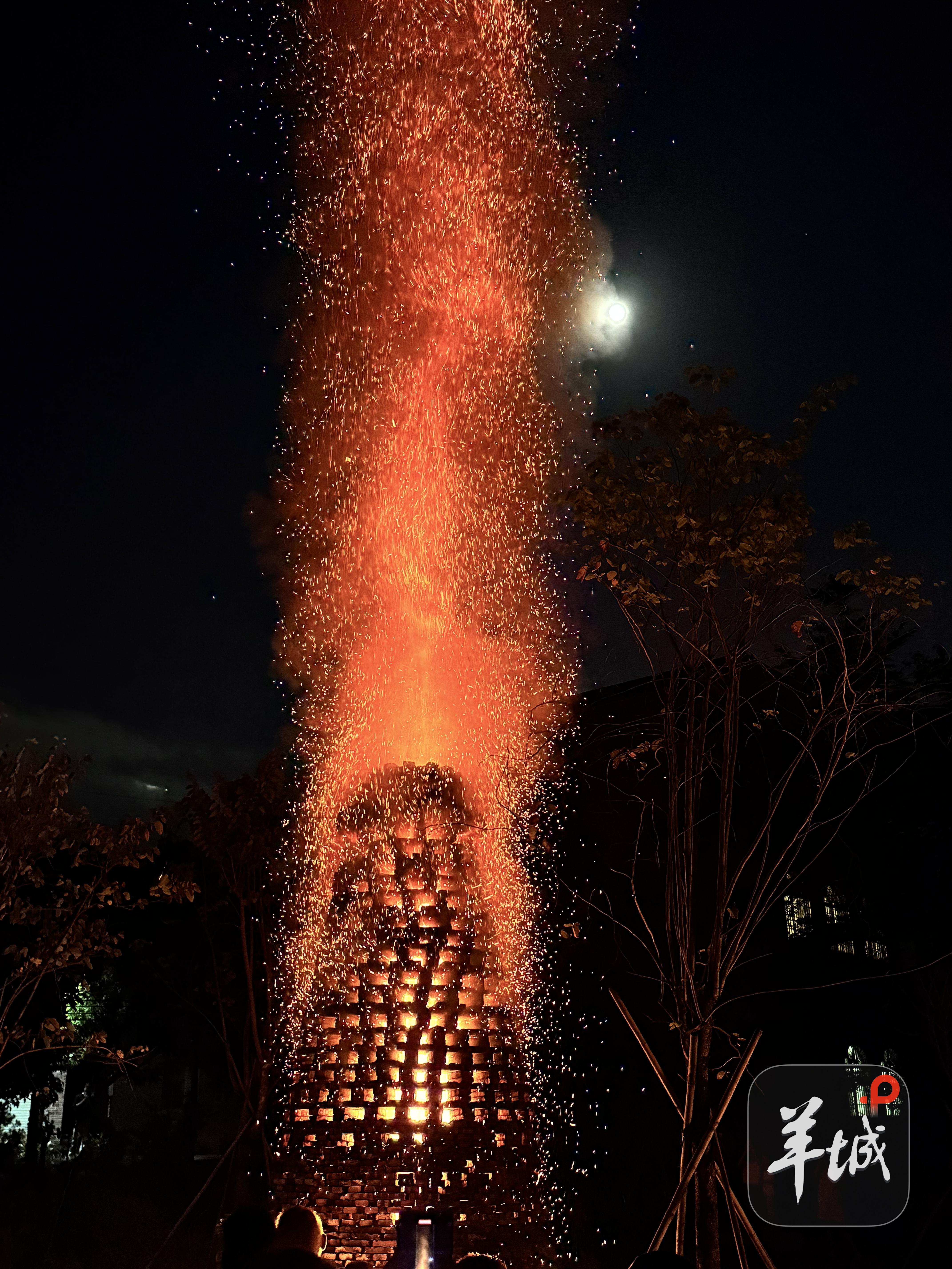 On the evening of October 6th, many citizens and tourists gathered at Langtou Ancient Village in Tanbu Town, Huadu District, Guangzhou, to jointly participate in the "Hay Tower Burning Ritual," a folk custom that has persisted for over a thousand years. "Hay Tower Burning," also called "Fan Tower Burning," involves pouring dry grass and firewood into a brick-and-tile tower, then setting it alight, with salt thrown onto intensify the flames. At the height of the blaze, flames shot into the sky, drawing exclamations and cheers from the crowd—after all, "the more sparks fly and the higher the flames, the better the luck in the coming year."