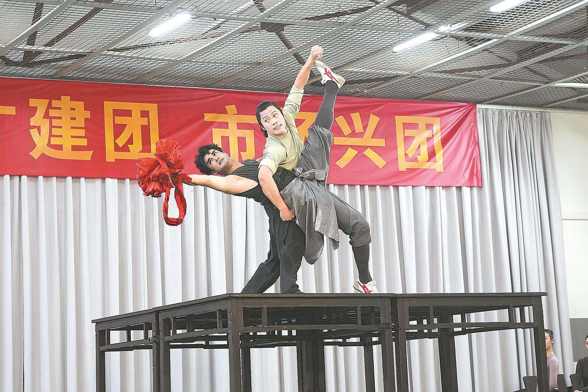 为备战中国艺术节,舞剧《醒・狮》团队在今年国庆中秋假期不停歇。在排练现场,记者看到,主创团队和依力凡、庞冠宇等演员们精气神十足,一丝不苟投入角色当中,通过舞蹈动作充分演绎、传承、弘扬“醒狮”精神。