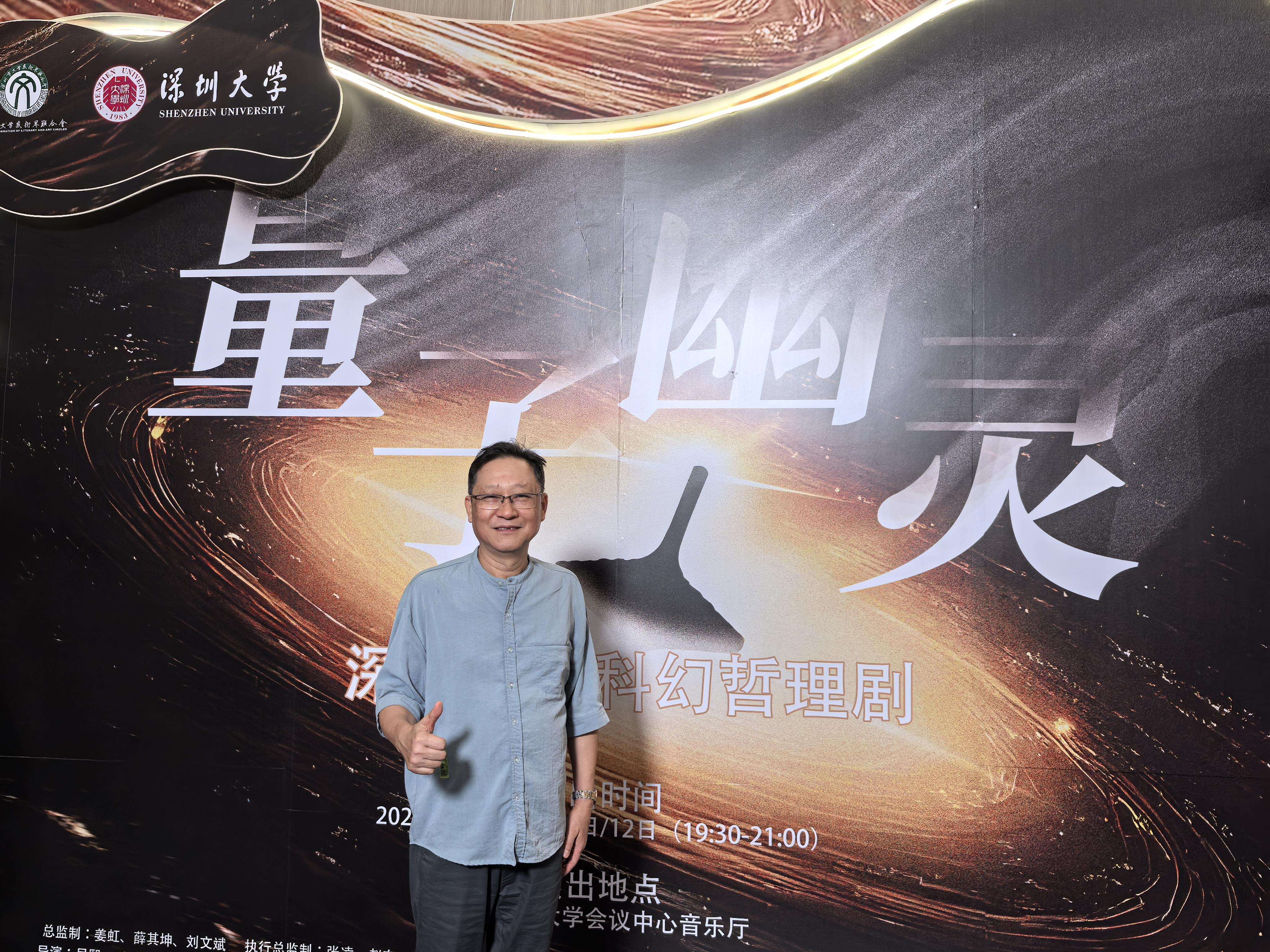 ——继首部作品《云身》斩获2024年人民文学大奖并引爆观演热潮后,由陈跃红、吴岩、尹迪三位教授联袂创作的“科幻哲理剧三部曲”第二部《量子幽灵》,于10月10日在南方科技大学会议中心音乐厅首演。