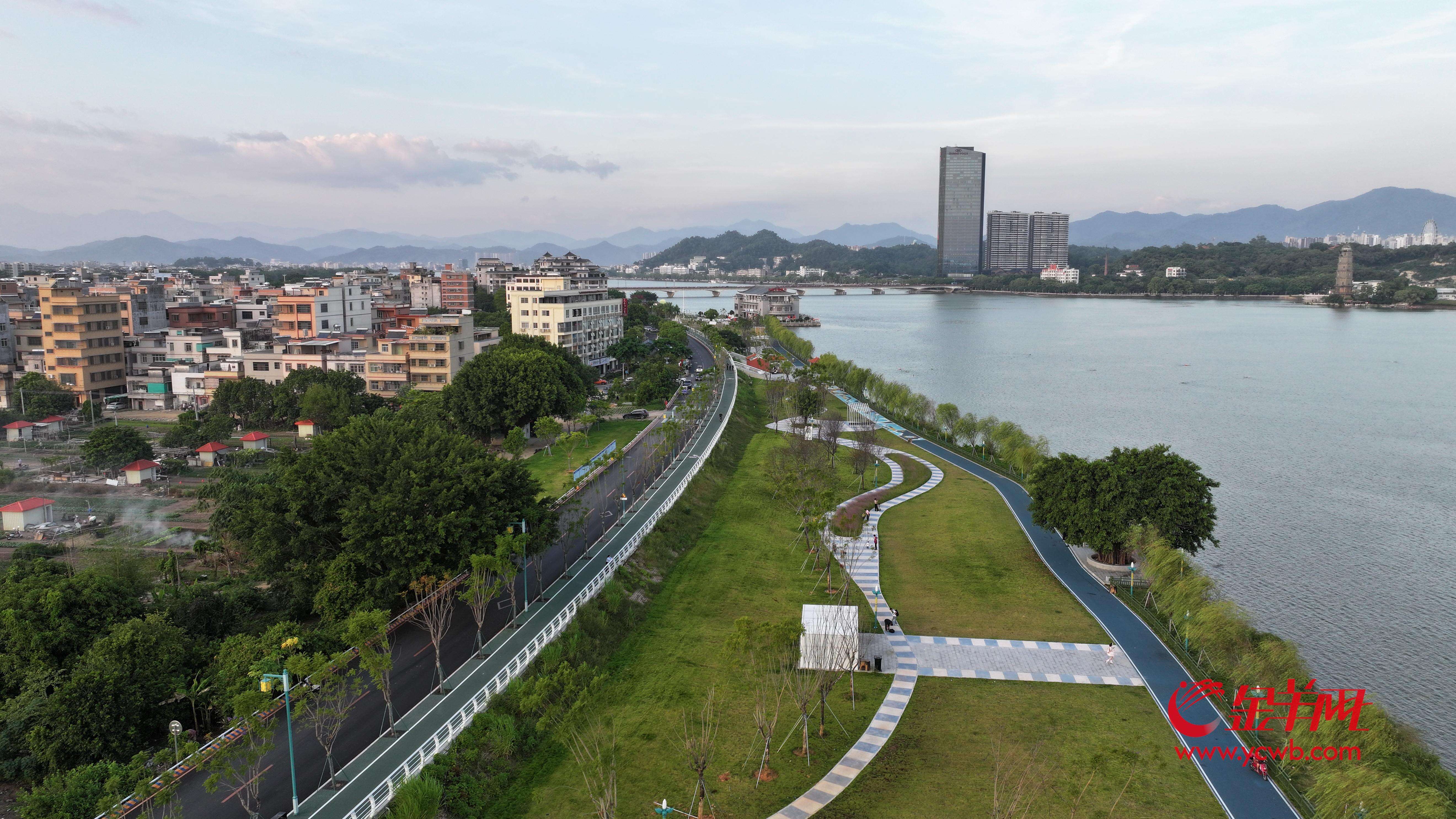 如今,那条环岛碧道犹如一条湛蓝丝带,5.4公里长的彩色沥青路面科学实现了人车分流。沿途,休息区、观景台巧妙串联,更精心设置了观赏韩江日出日落的绝佳“打卡点”。数百株新植的蓝花楹静待繁花满枝、蔚然成荫;四座亲水平台探入粼粼波光,邀请人们在此奔跑、漫步,尽情感受江风的轻柔抚慰。