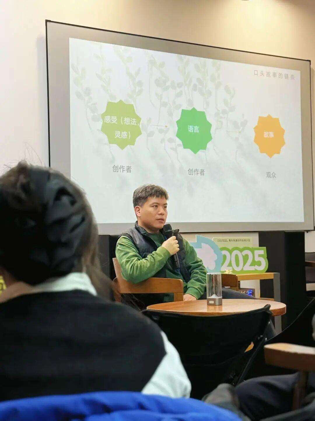 谈及如何从生活中提炼自己的个人感受,张崇以一个即兴练习开场,他请观众回忆并描述最近让自己“被触动”的生活片段。一位观众讲到窗外叶子的变黄,另一位讲到奶奶为她保存的“雪鸭子”。这些日常故事成为他论述的起点:“故事的源头,不是情节或结构,而是那个在心里产生冲击的瞬间。” 他指出,影像创作的逻辑链条与讲述故事的过程相似:从生活中的触动开始,经由语言转化为剧本,再经由摄影、美术、表演、音乐等多重媒介层层转译,最终抵达观众的感受。而观众所体验到的“好”或“感动”,其根源正是最初那份“被触动的感觉”。