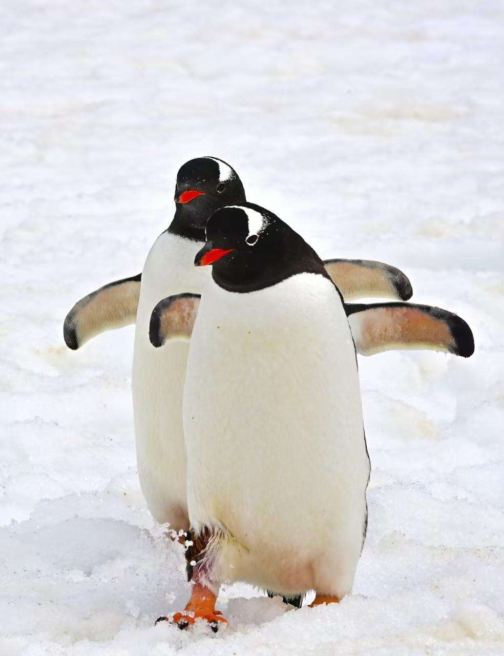 南纬55°以南的南极,是我极地之旅的起点。从“世界最后的小镇”乌斯怀亚启航,穿越风浪汹涌的德雷克海峡,当看到第一座冰山刺破海平面,真是让人极度震撼。这片95%被冰盖覆盖的大陆,年均气温低至-25℃,却孕育着很多鲜活的生命。半月岛的巴布亚企鹅,穿着黑白礼服,笨拙地从冰坡滑入海水,尾鳍一摆便化作灵活的潜游者;欺骗岛的帽带企鹅成排站立,鲜红眉纹如燃烧的火焰,鸣叫声响彻火山岩滩。