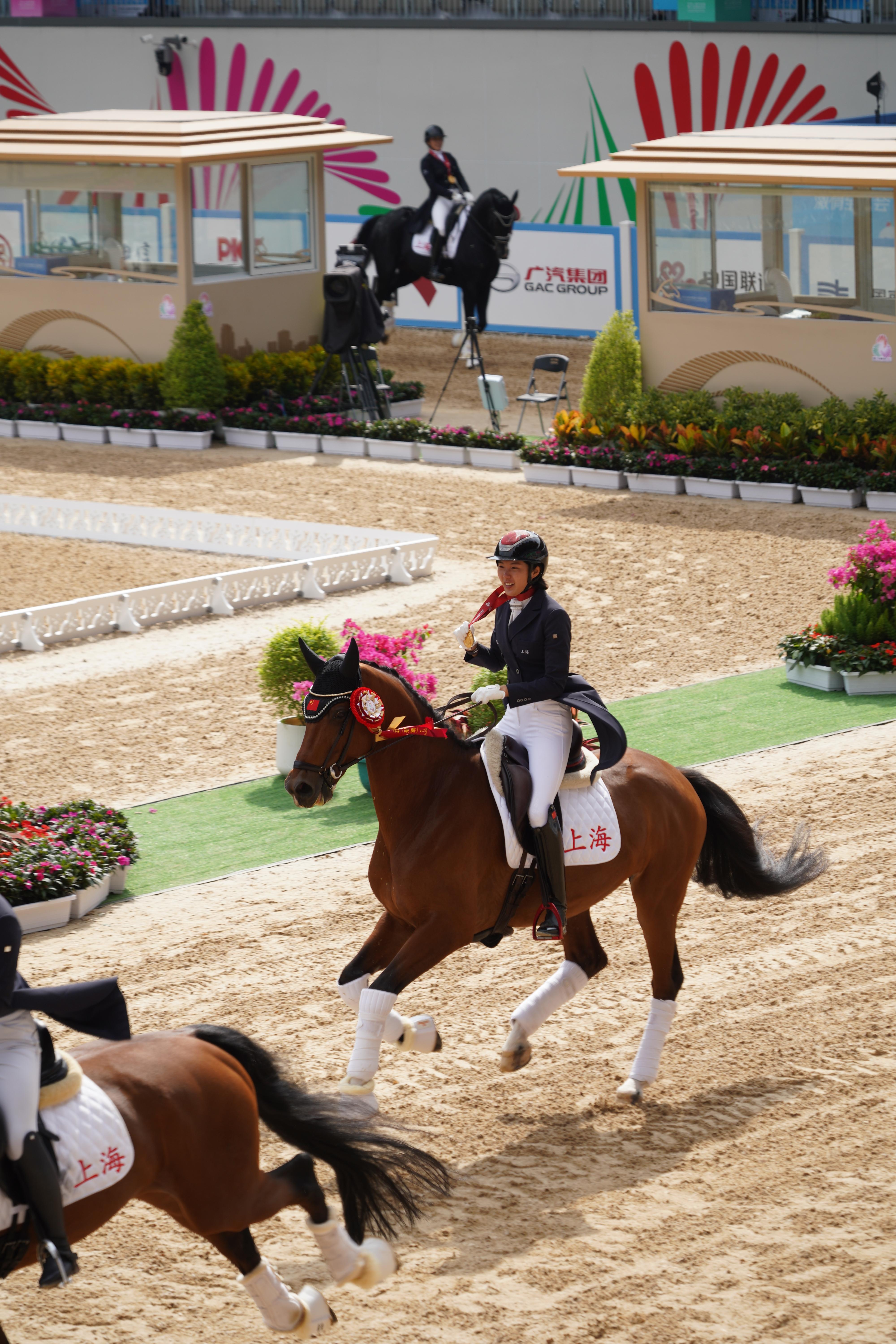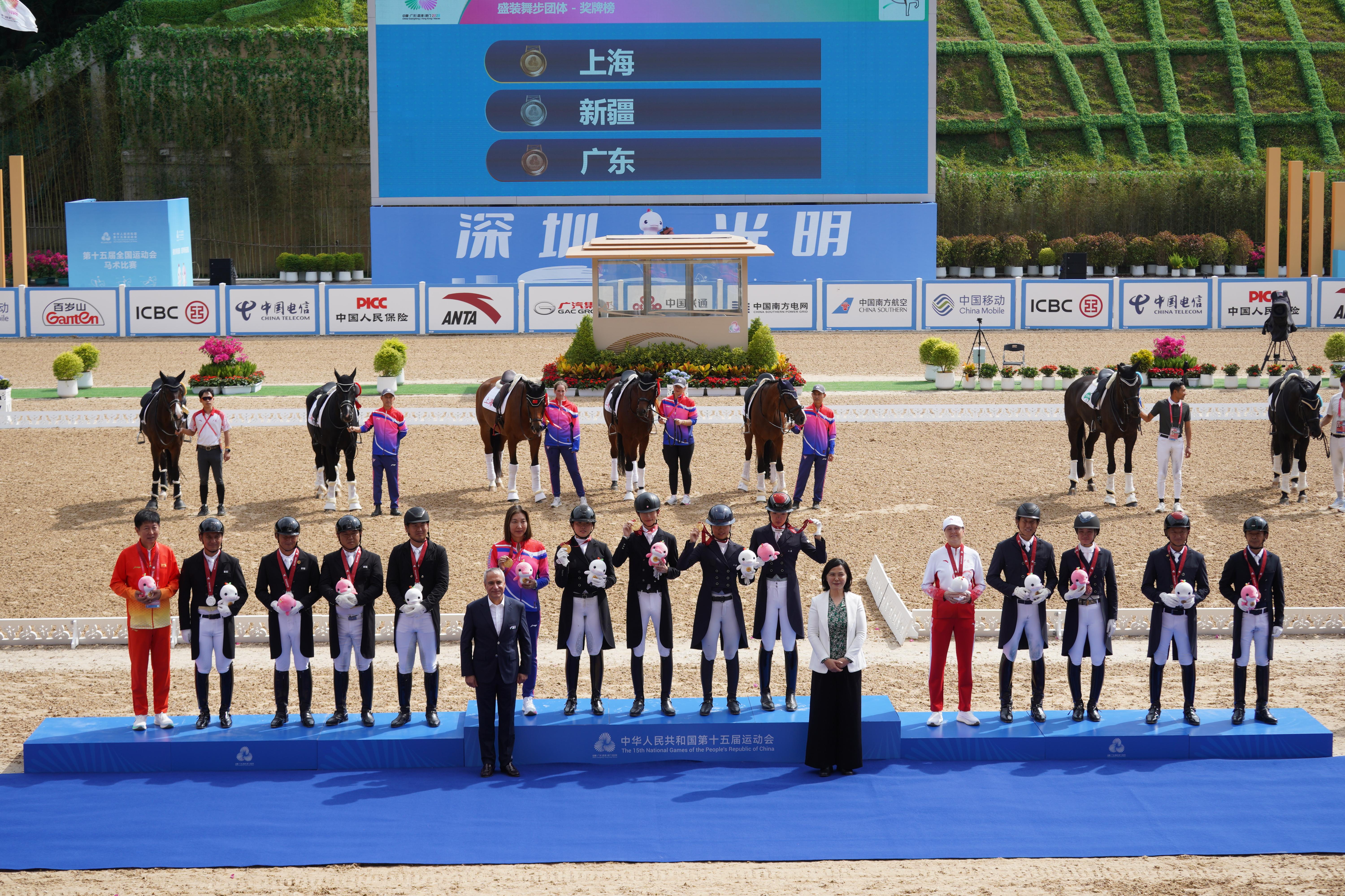 Equestrian events of China's 15th National Games commenced at Shenzhen Guangming International Equestrian Centre on the morning of November 10th.The first gold medal awarded in Shenzhen after the opening of the 15th National Games was in the team dressage event, which was won by the Shanghai team.The Xinjiang and Guangdong teams took the silver and bronze medals respectively.The equestrian competition of the 15th National Games comprises three disciplines: Dressage, Eventing, and Jumping. A total of six gold medals will be contested, with both team and individual titles available in each discipline.
