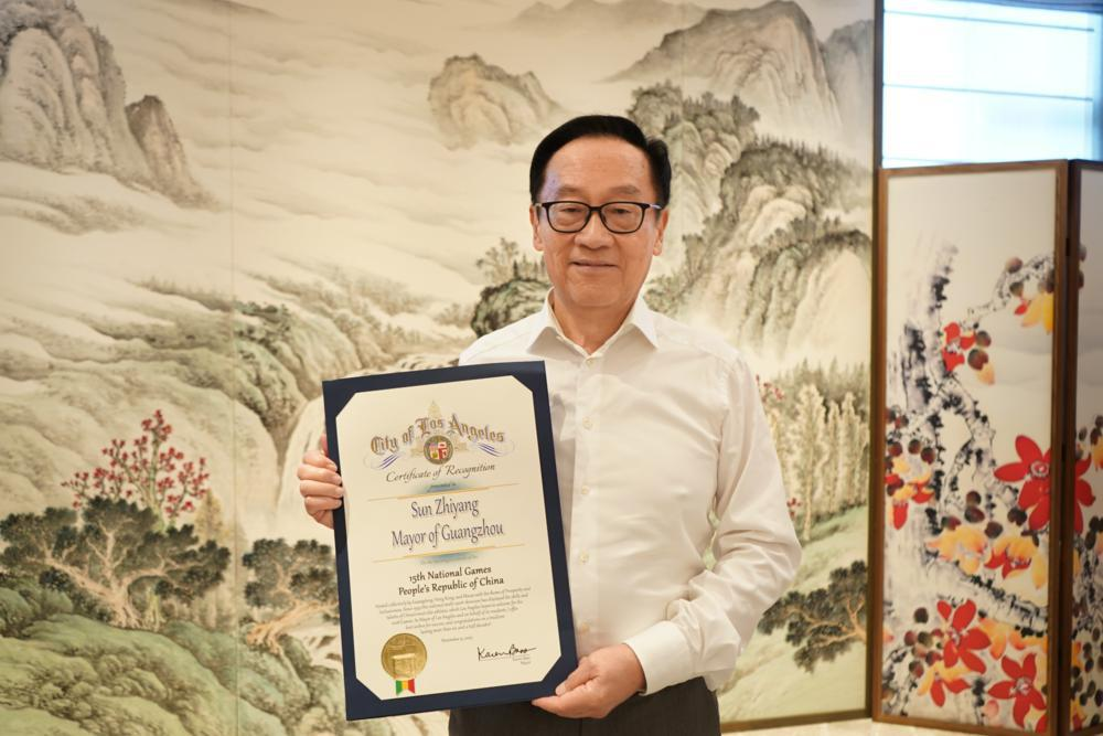 1981年12月8日,美国洛杉矶市与广州市正式缔结友好关系。44年来,两市在经贸、文化、教育和体育等领域保持密切互动,成为中美地方合作的重要典范。此次洛杉矶代表团访穗期间,康永华还转交了洛杉矶市长凯伦·巴斯致广州市长孙志洋的贺信,并诚邀广州运动员及市民朋友共赴2028年洛杉矶奥运会。