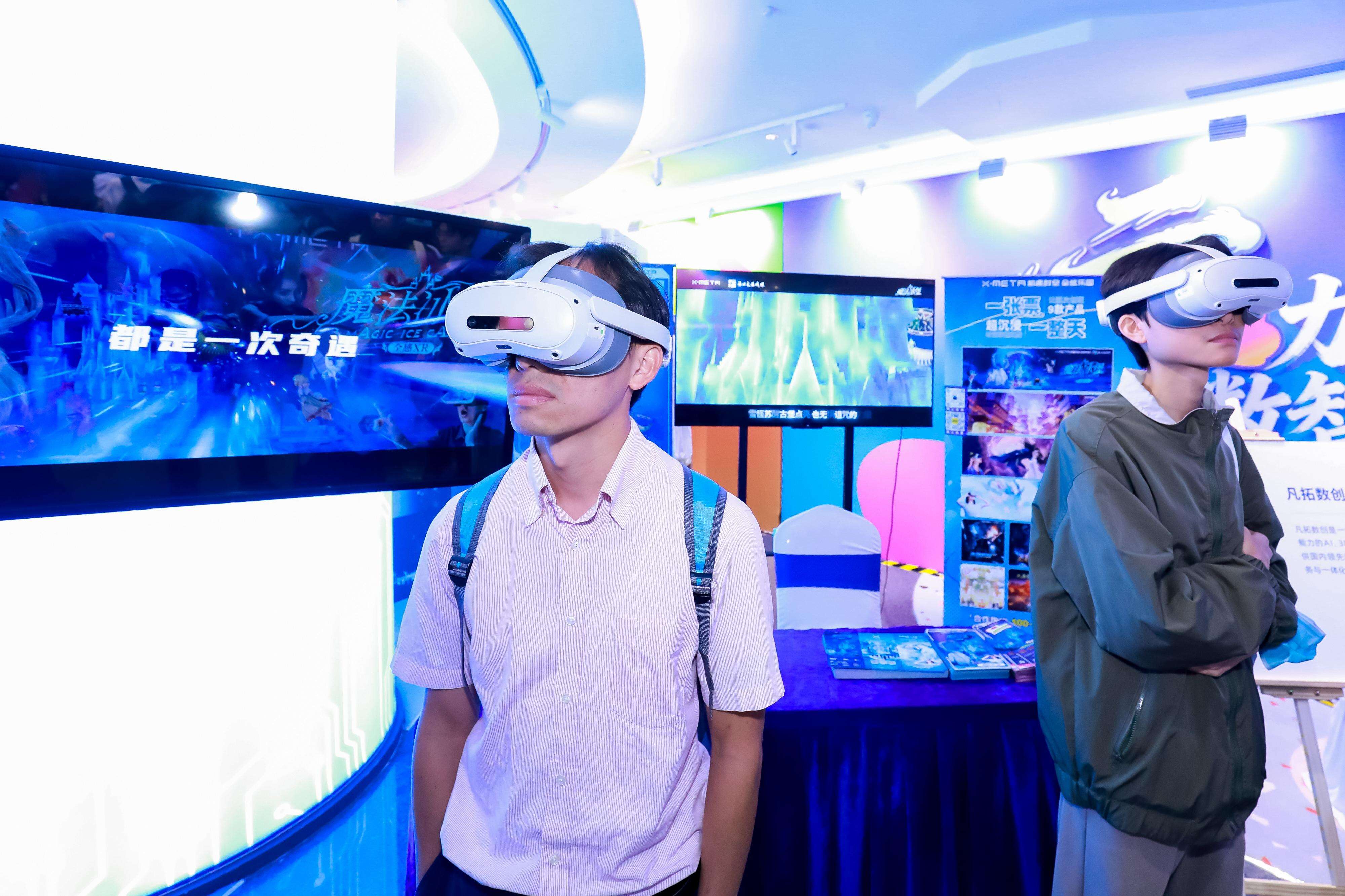 The cultural industry policy exhibition and the creative market brought together more than 20 technical colleges from across Guangdong, alongside many high-quality cultural enterprises. Several themed exhibition zones were set up. In the Cultural Technology zone, a full-sensory VR experience created a stunning ice-and-snow fantasy world. In the Intangible Heritage zone, traditional crafts such as "Duntou Blue" textile and Leizhou kiln-fired pineapple-shaped ceramics were on display. In the Art Toy IPs zone, local original IPs like the mascots of the 15th National Games, "Xiyangyang" and "Lerongrong", attracted many young visitors.