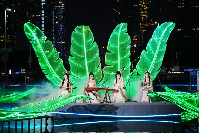 Festival Cahaya Internasional Guangzhou 2025 dimulai pada malam hari tanggal 16 November. Selama upacara penerangan, elemen-elemen dari upacara pembukaan Pekan Olahraga Nasional ke-15 – termasuk kura-kura laut raksasa, daun pisang, dan bunga kapuk – kembali tampil megah sebagai bagian permanen dari festival tahun ini. Selain itu, Menara Guangzhou, Menara Timur (Chow Tai Fook Financial Centre), dan Menara Barat (International Finance Centre) menyinkronkan tampilan cahaya mereka, mengikuti kontur dinamis langit kota.