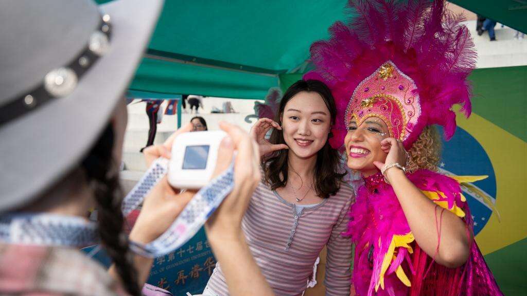 11月22日上午,在广东外语外贸大学60周年校庆之际,第十七届世界文化节在白云山校区体育场开幕。